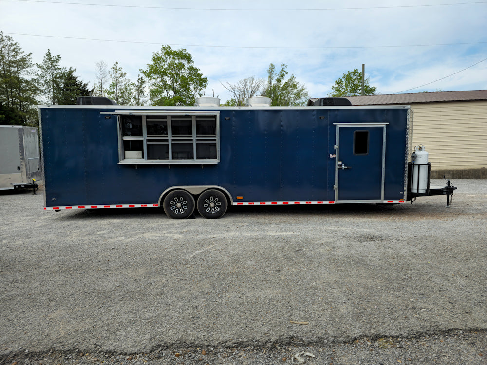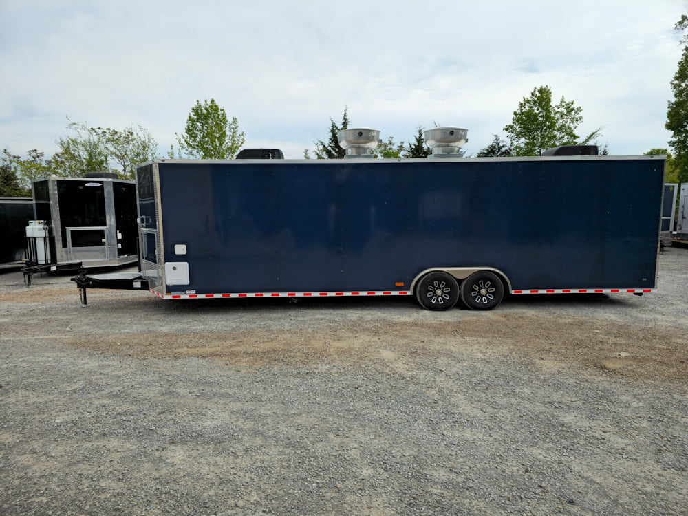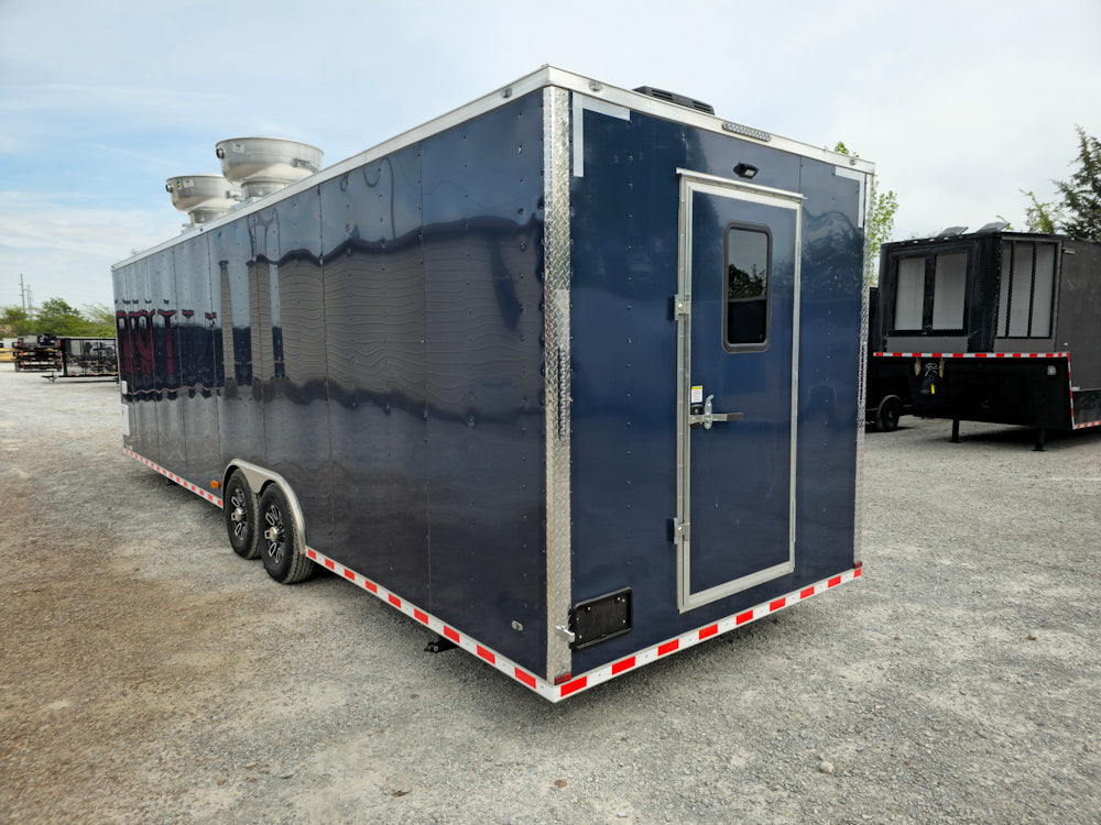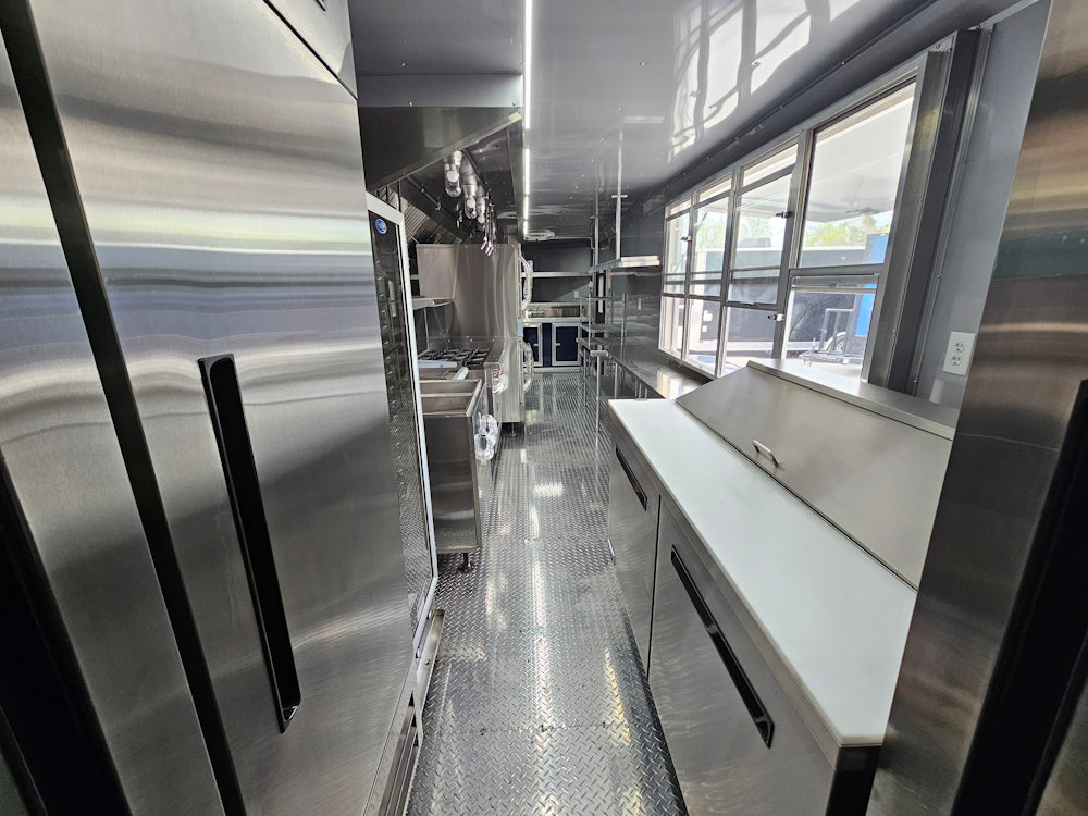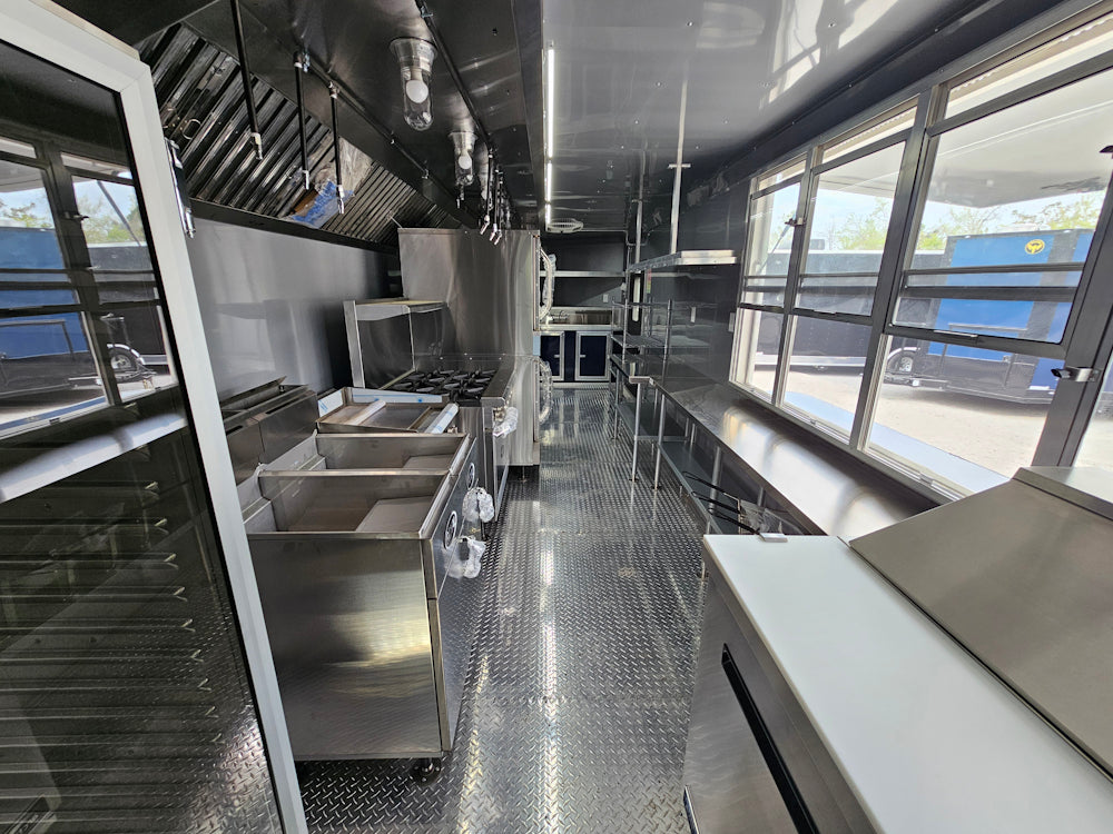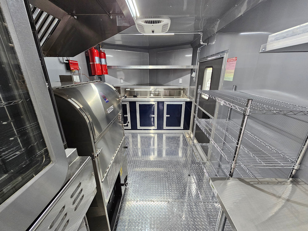 This 8.5' x 30' Indigo Blue Concession Trailer is a high-capacity mobile kitchen designed for BBQ and event catering professionals. Featuring a bold exterior, spacious interior, and premium stainless steel prep surfaces, it’s built to turn heads and handle heavy service with ease. Outfitted with top-tier commercial appliances and generous storage, it’s the perfect setup for high-volume food operations on the go.