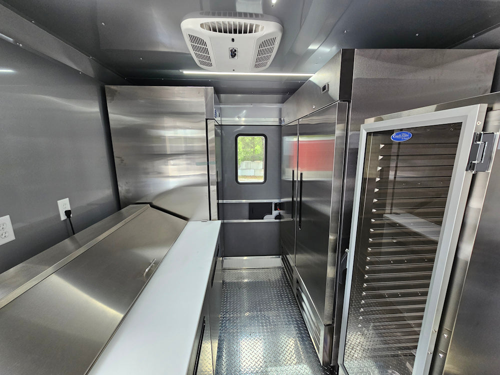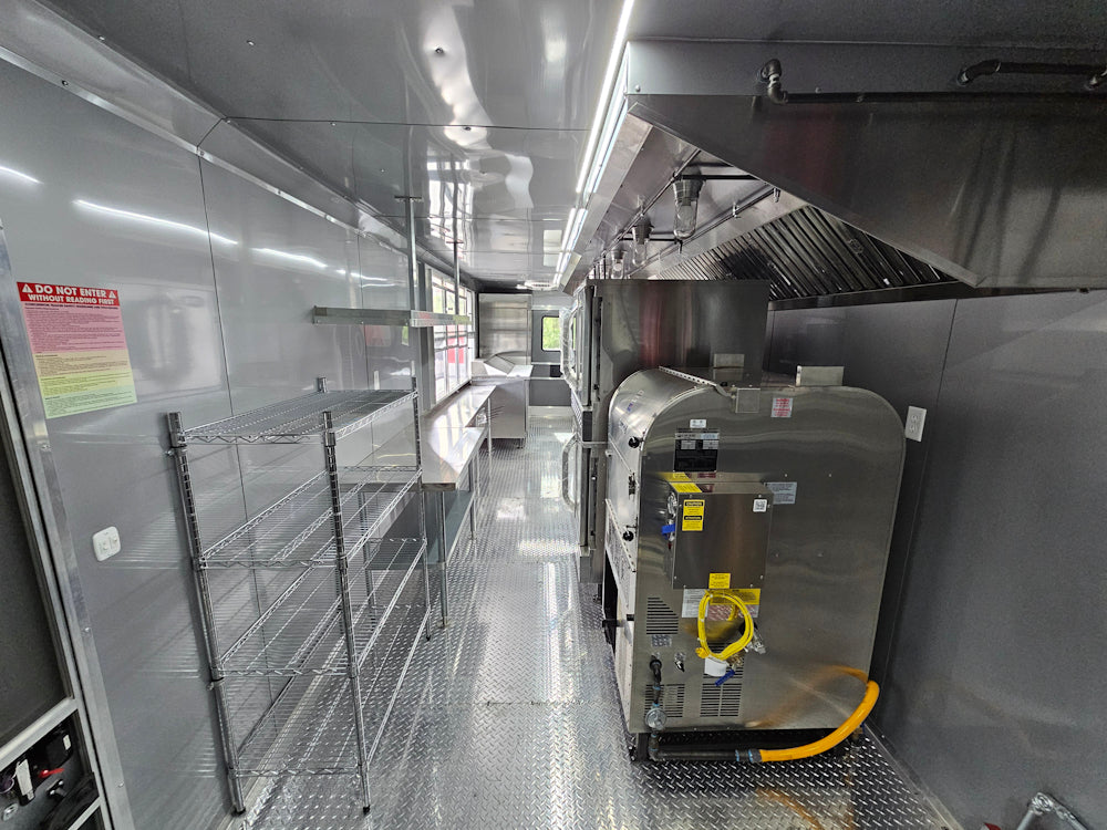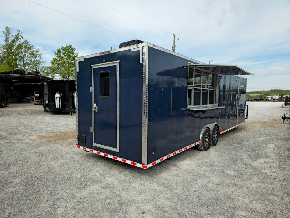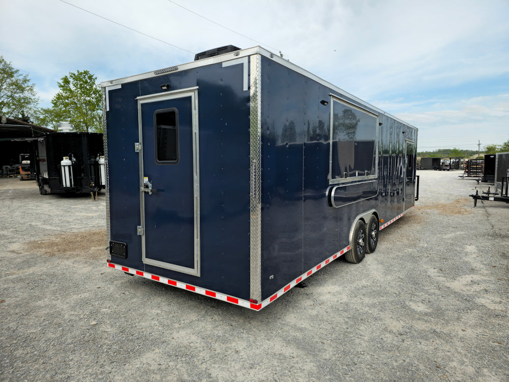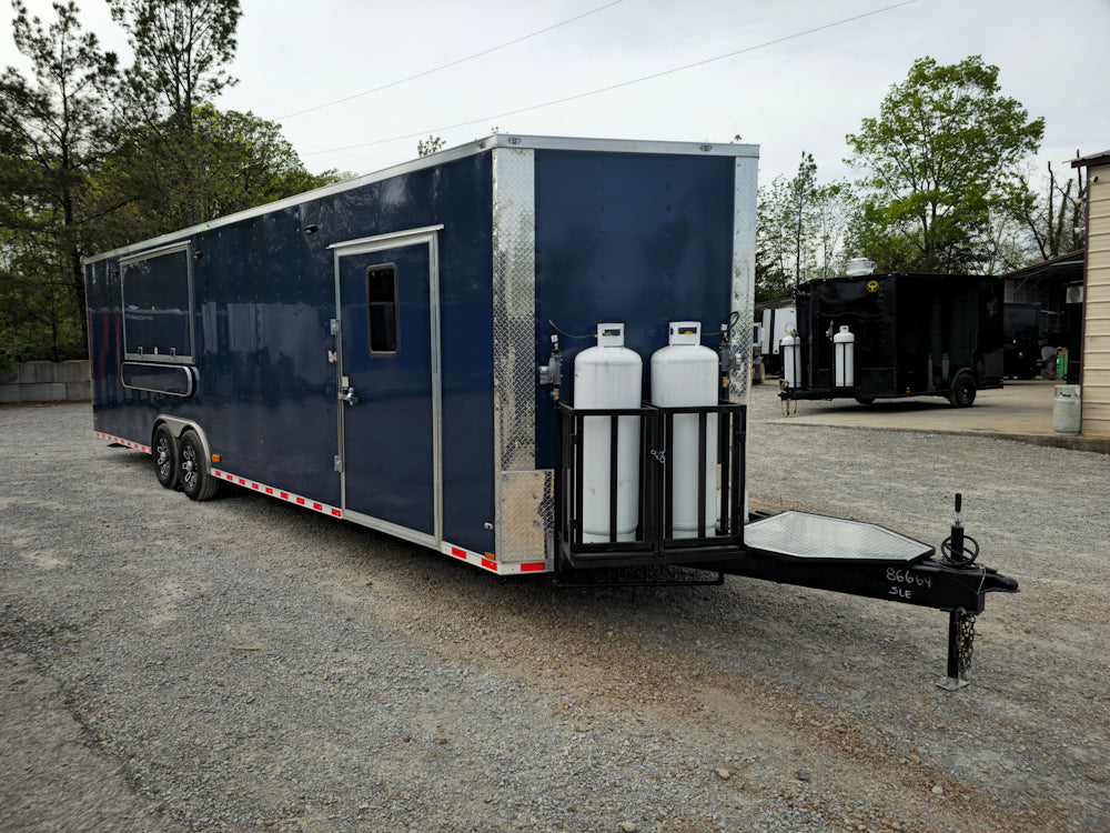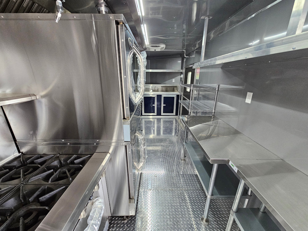 This 8.5' x 30' Indigo Blue Concession Trailer is a high-capacity mobile kitchen designed for BBQ and event catering professionals. Featuring a bold exterior, spacious interior, and premium stainless steel prep surfaces, it’s built to turn heads and handle heavy service with ease. Outfitted with top-tier commercial appliances and generous storage, it’s the perfect setup for high-volume food operations on the go.