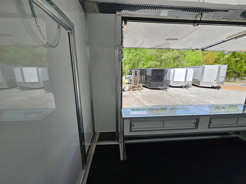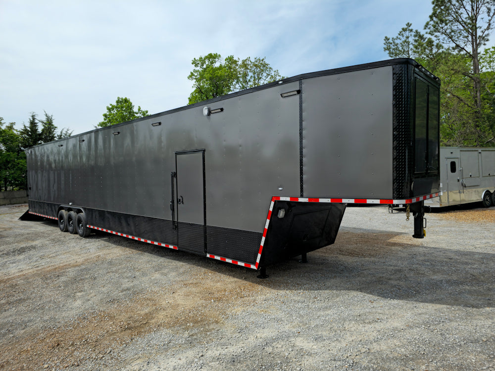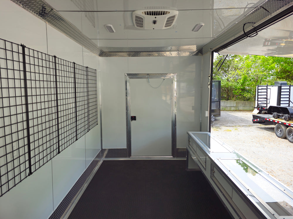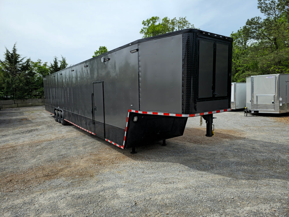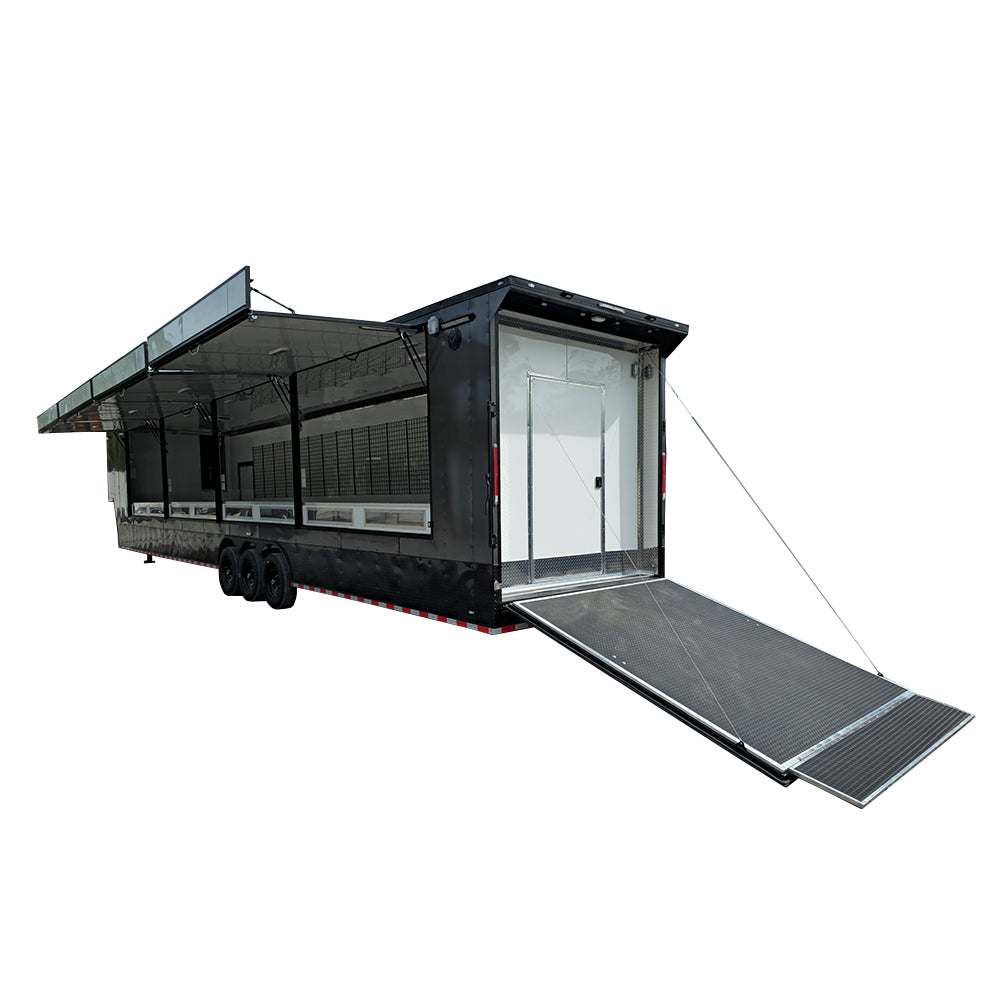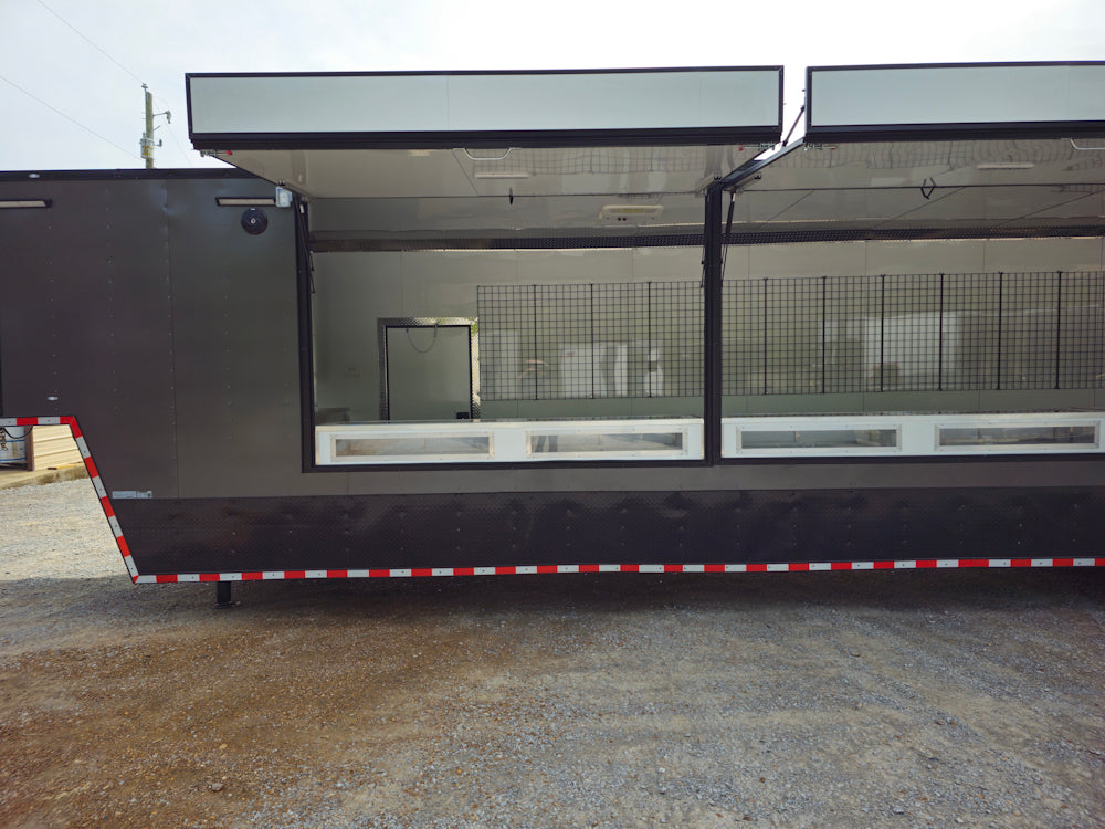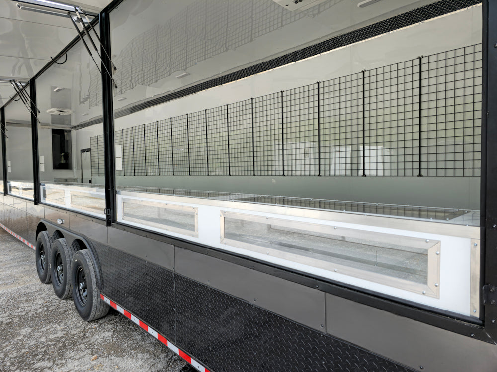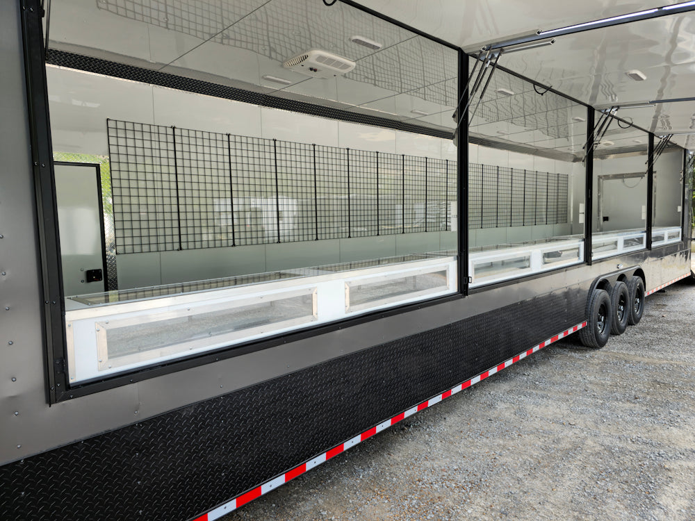 This 8.5' x 53' Charcoal Grey Concession & Event Trailer is a high-impact, fully customized mobile unit designed to turn heads and elevate any activation. With premium finishes, dual climate control, and expansive flip-up displays, it’s built for performance, style, and flexibility. Ideal for large-scale marketing events, food service, or product showcases, this trailer is ready to deliver a standout experience.
