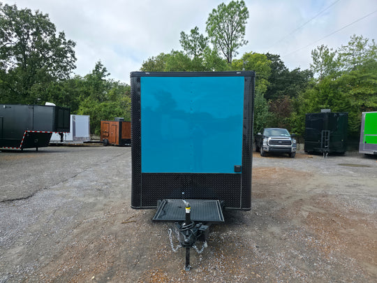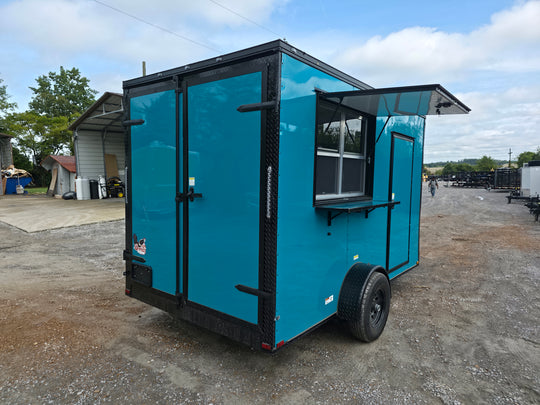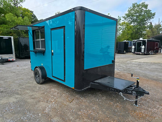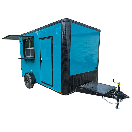 7' X 12' Water Blue Concession Trailer Flat Front Food Event Catering