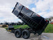 The 7-foot by 12-foot hydraulic dump trailer is designed for robust performance and durability. It features 4-foot high sides, providing substantial capacity and secure containment. Equipped with dual greaseable 7,000 lb axles, the trailer ensures superior load-bearing capability and reliable operation. For enhanced visibility and safety, it includes wired LED drive lights, while the hydraulic control box, conveniently mounted on the tongue, offers easy access for smooth and efficient operation.