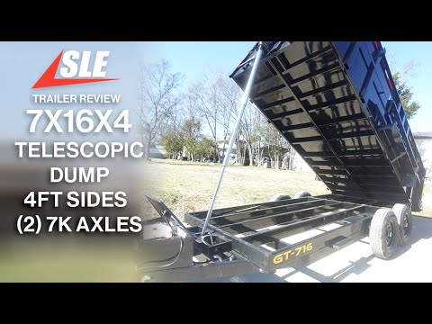 7x16 Telescopic Dump Trailer with 4ft Sides (2) 7K Axles 14k GVWR