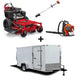 This package includes a 52 inch Ferris FW45 (5901892) with a 28 horsepower Vanguard EFI engine, one Husqvarna 130BT backpack blower, one Husqvarna 128LD straight-shaft string trimmer, and a 6x12 enclosed trailer.