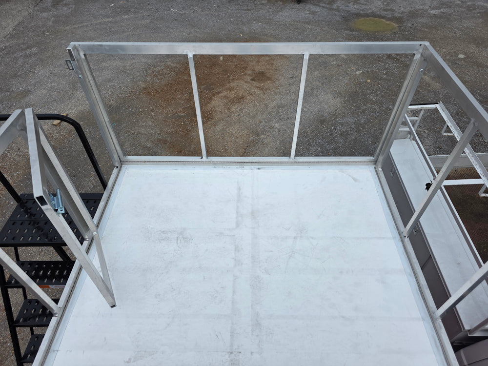 • Foldable safety rails: Installed along the staircase, passenger side of the trailer, and the front and rear of the top box area for enhanced fall protection and operator safety