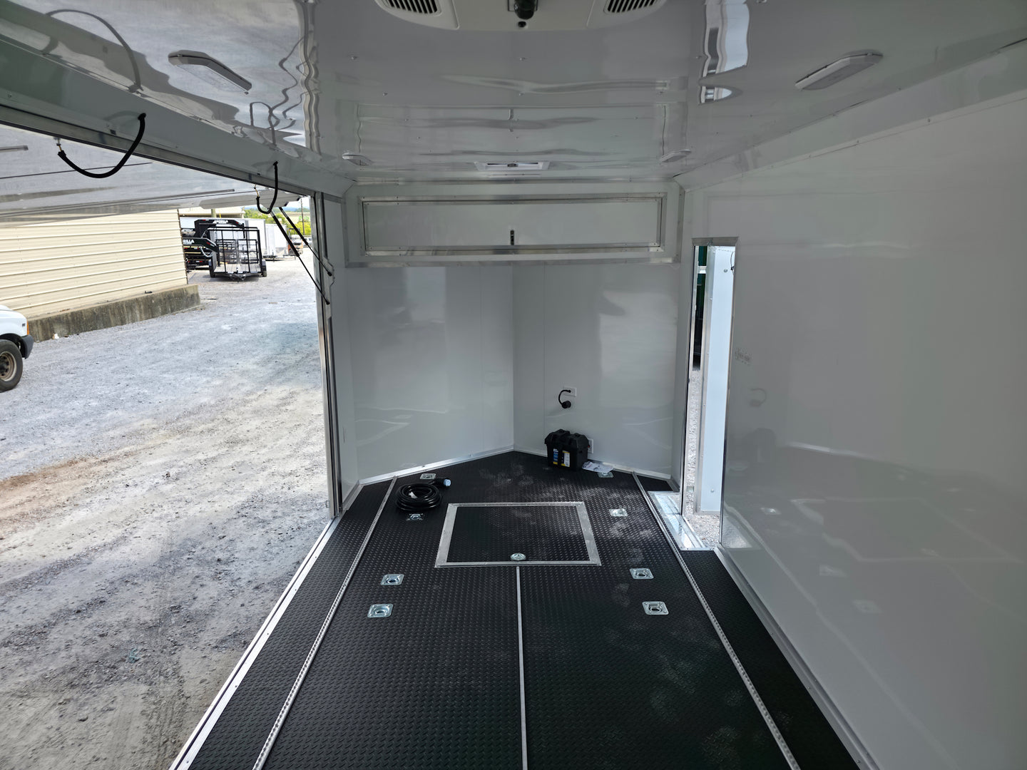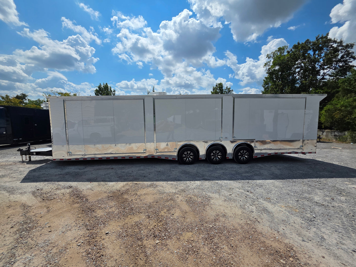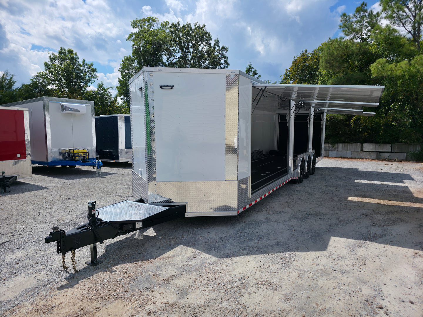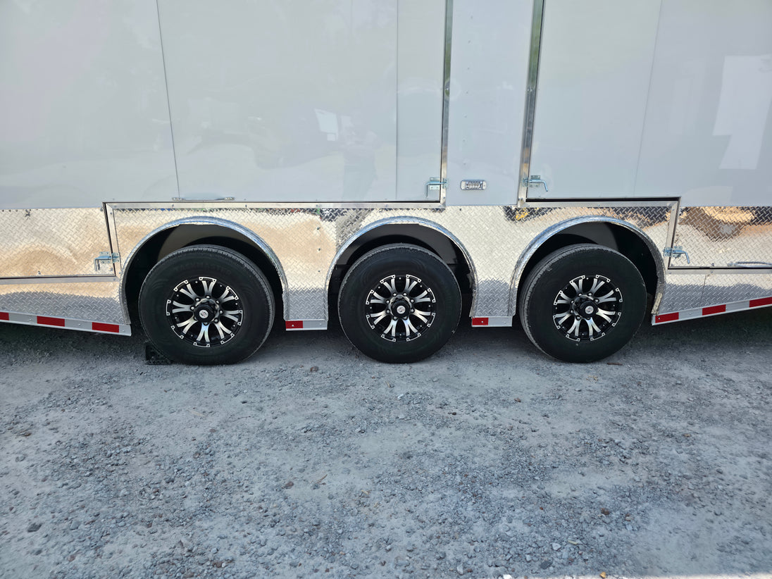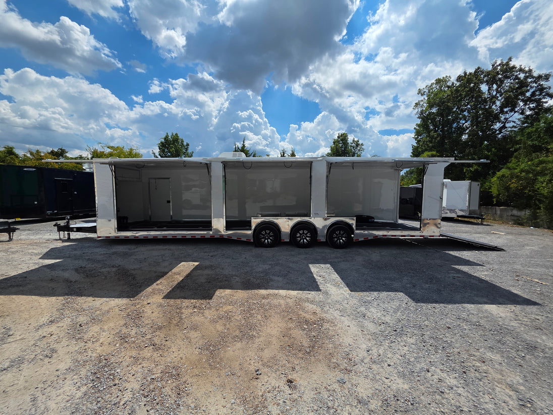 This 8.5' x 36' custom car hauler is built for serious hauling, storage, and performance with triple 7,000 lb spread axles and a spacious 7.5' interior height. Packed with premium features like a rear spoiler, recessed 5,500 lb winch, extensive lighting, it’s designed to handle any job in comfort and style. Durable finishes, insulated walls, and smart storage solutions make this trailer a professional-grade choice for transporting vehicles or equipment with ease.