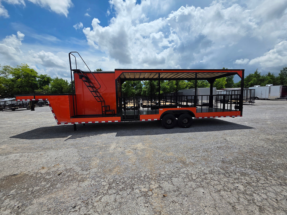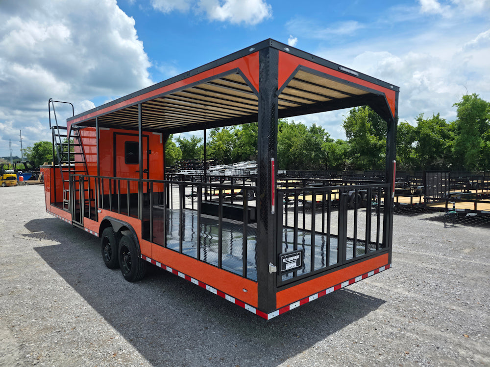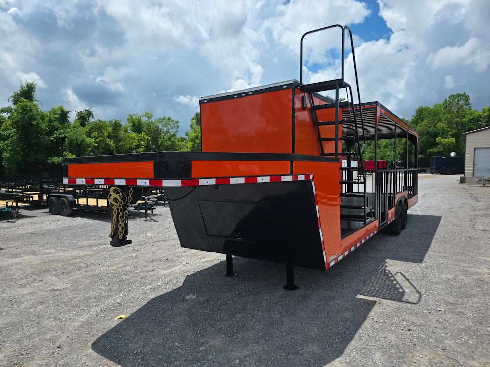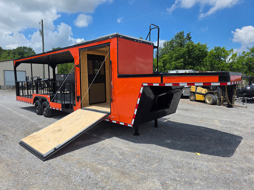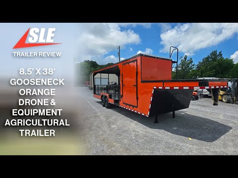 The 8.5’ x 38’ Gooseneck Orange Drone & Agricultural Spray Equipment Trailer is built for heavy-duty performance, safety, and efficiency in field operations. Featuring a bold orange exterior with blackout trim, a spacious 23’ covered rear deck, and a 6’ x 7’ enclosed area, it offers ample storage and a secure workspace. With walk-on roofing, foldable safety rails, and dual 10,000 lb axles, this trailer is designed to handle demanding agricultural and drone deployment needs with ease.