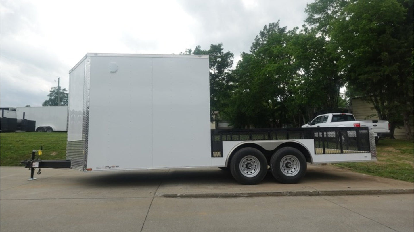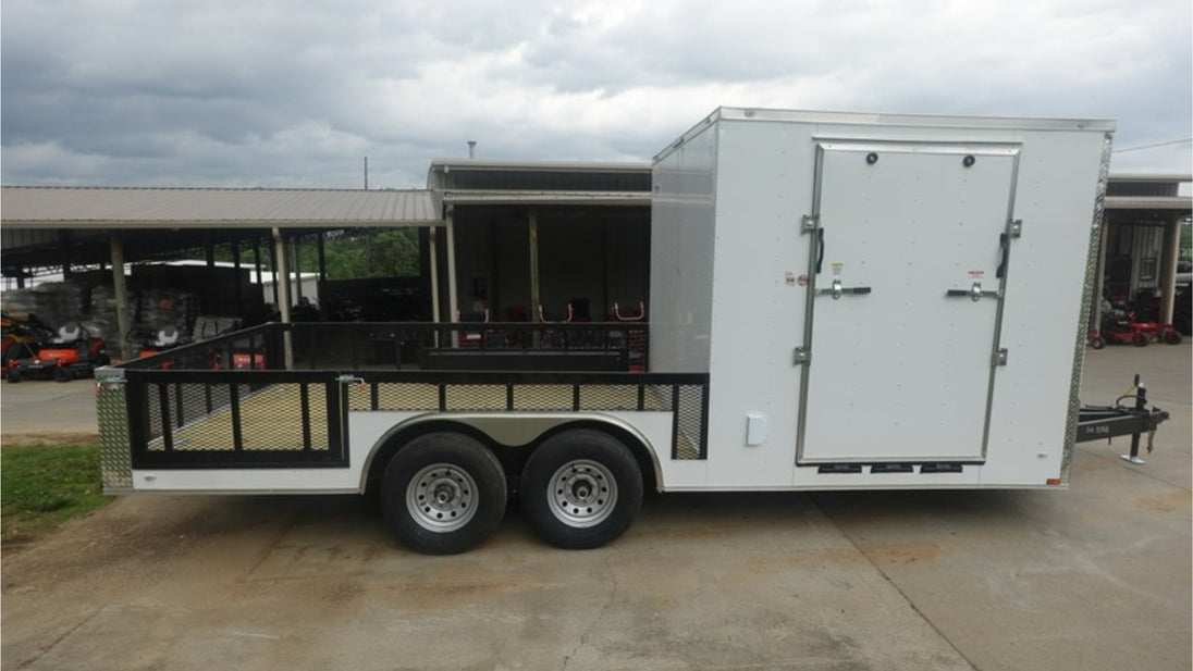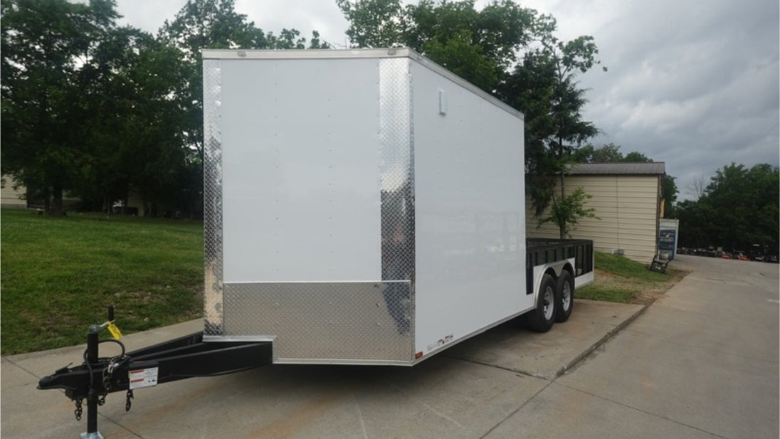 This 8.5x20 Enclosed Hybrid Trailer is ideal for hauling motorcycles, ATVs, tools, and event gear. With a no-roof rear deck and smart access features, it offers ease of use, spacious storage, and heavy-duty durability.