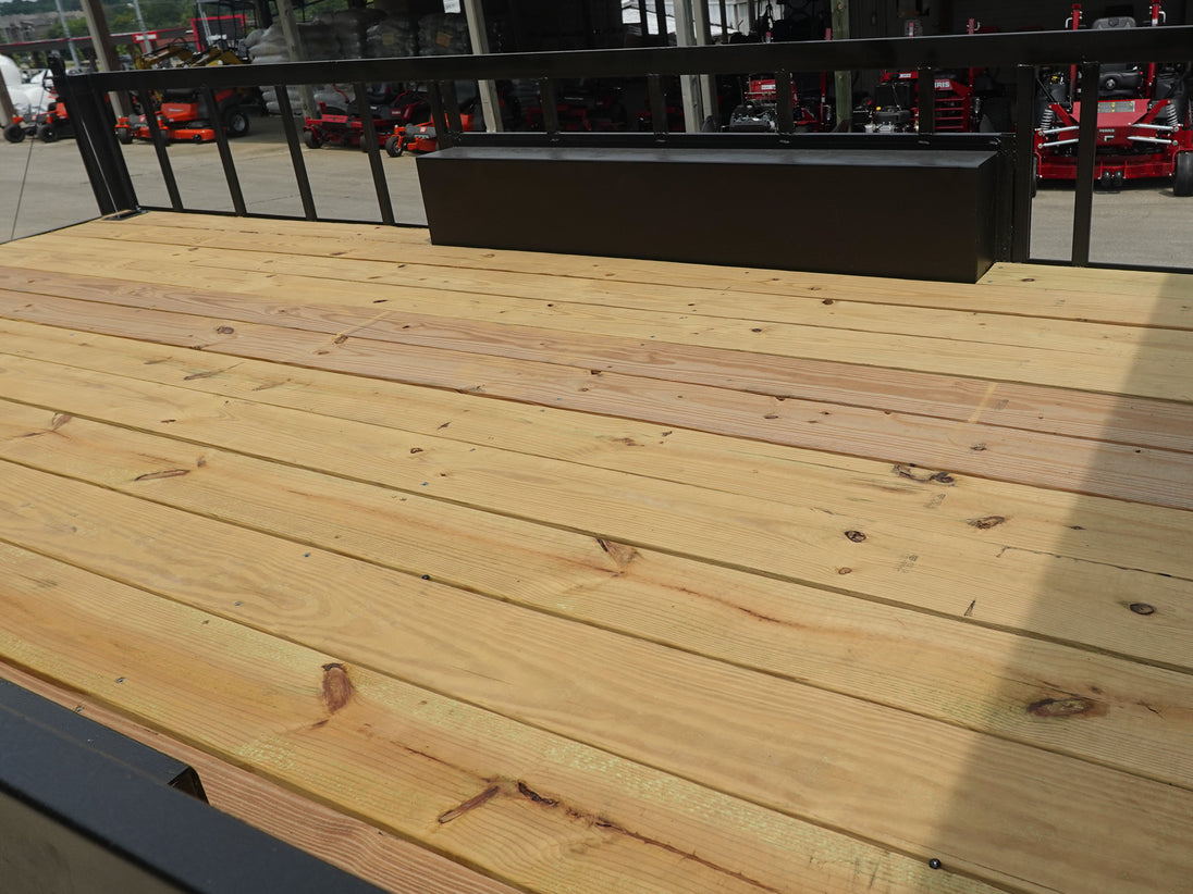 16' Pressure-Treated Utility Deck – Built with tough, weather-resistant wood and reinforced side rails, this open deck is perfect for transporting equipment, ATVs, landscaping tools, and more.