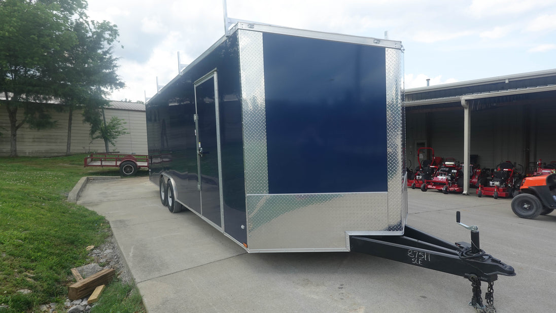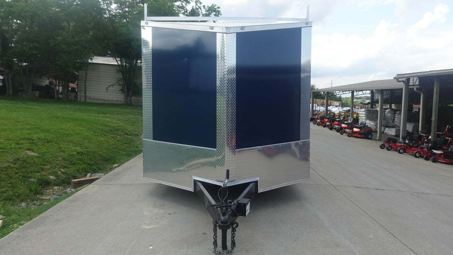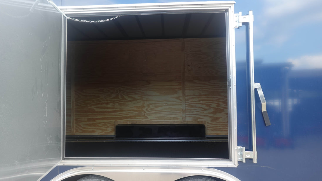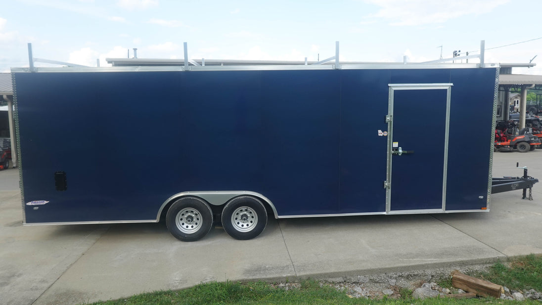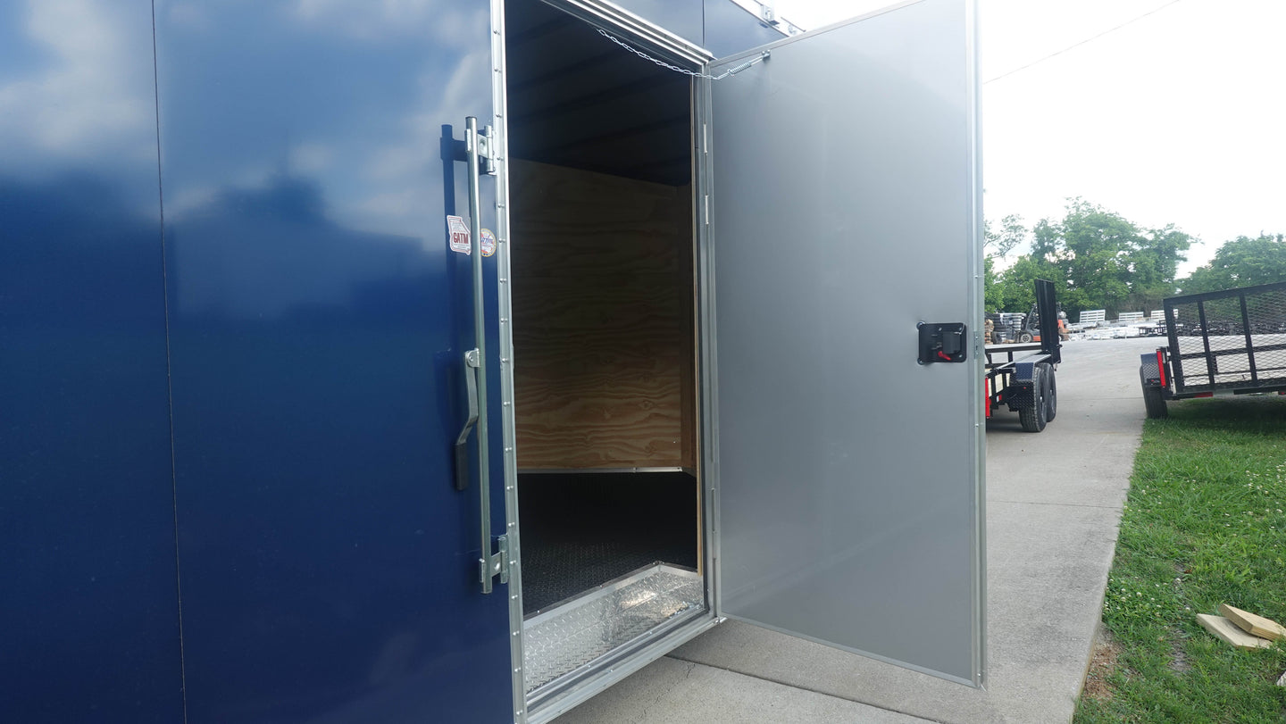 This 8.5’ x 24’ V-Nose Enclosed Trailer offers a rugged setup perfect for contractors, equipment haulers, or mobile workstations. Featuring a .080" blue polycore smooth exterior with a slanted top and a full walkable roof.