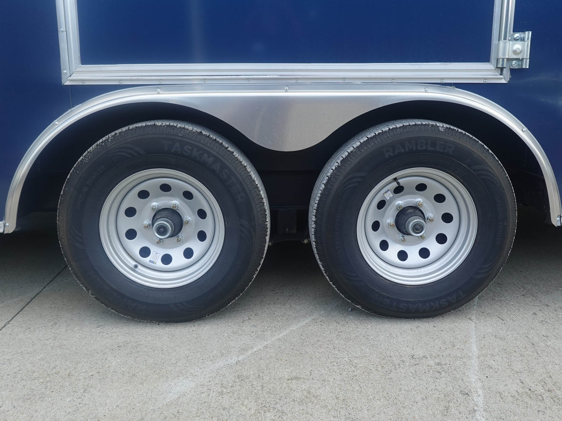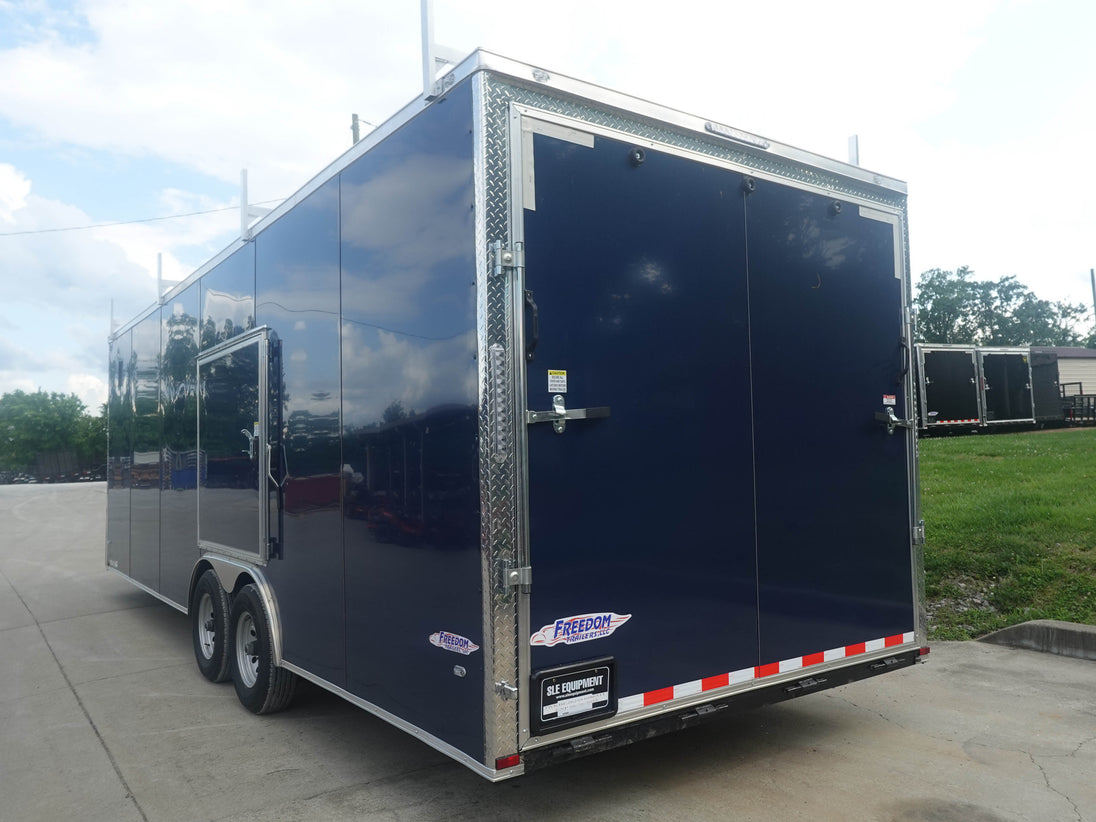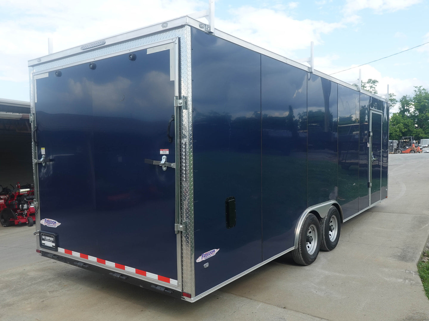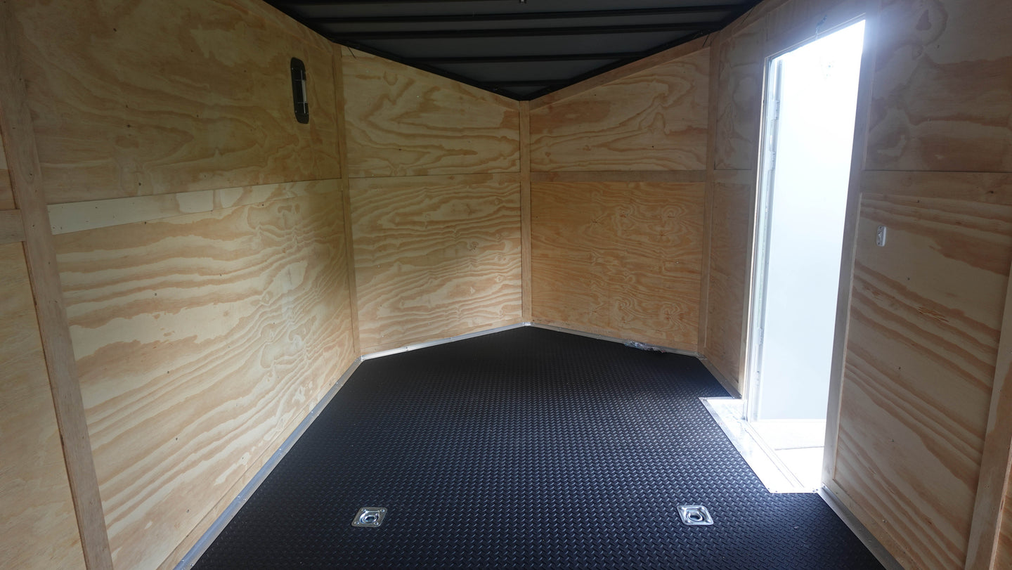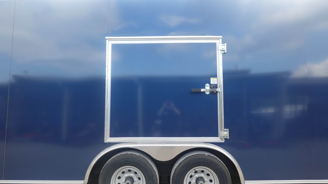 This 8.5’ x 24’ V-Nose Enclosed Trailer offers a rugged setup perfect for contractors, equipment haulers, or mobile workstations. Featuring a .080" blue polycore smooth exterior with a slanted top and a full walkable roof.