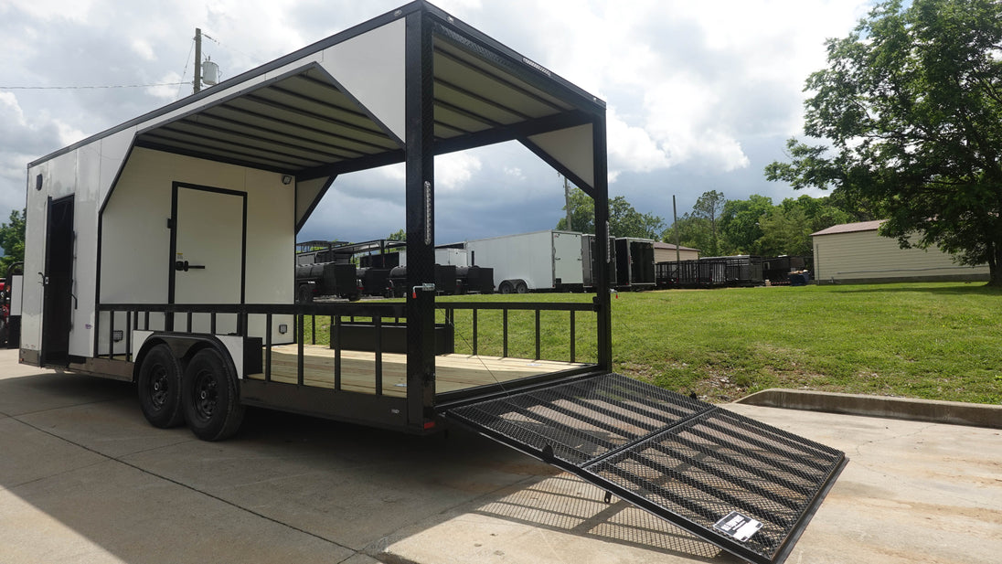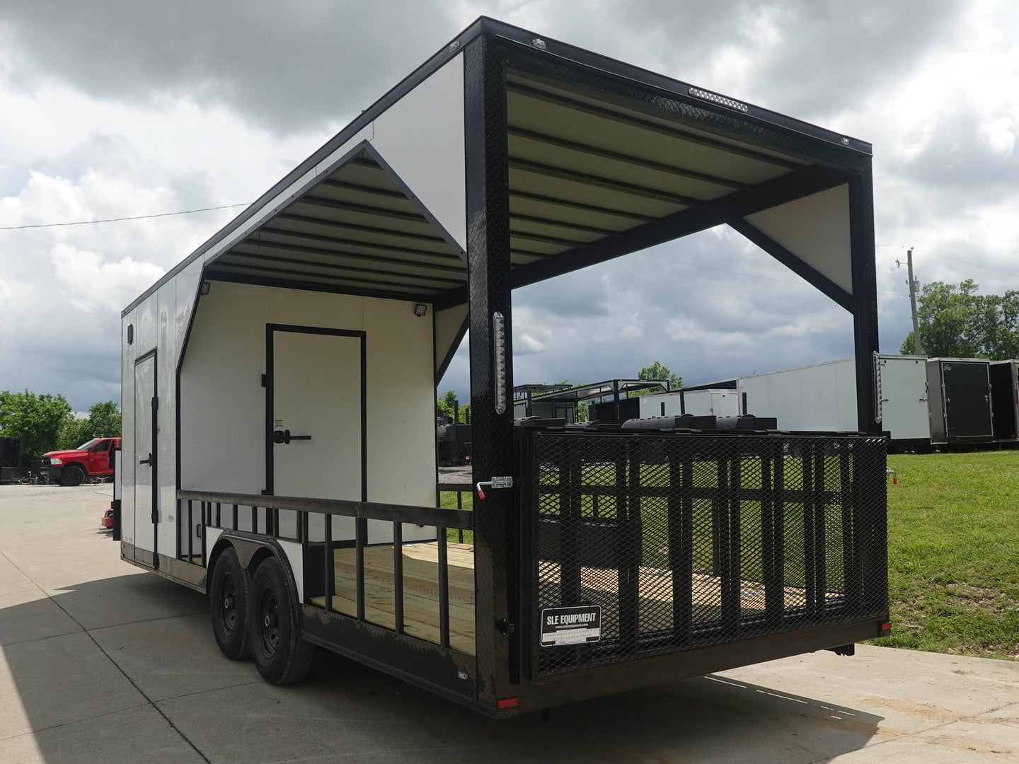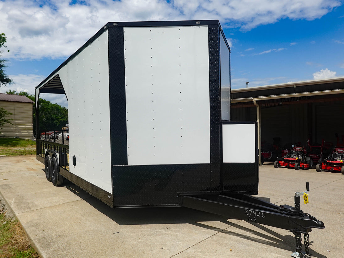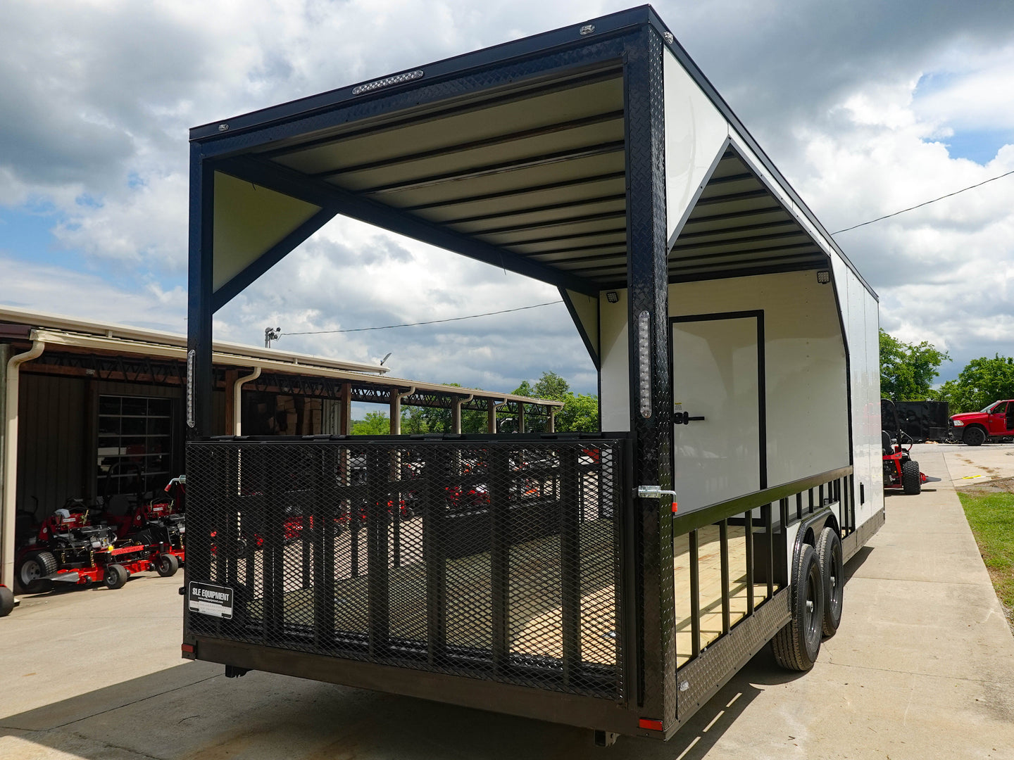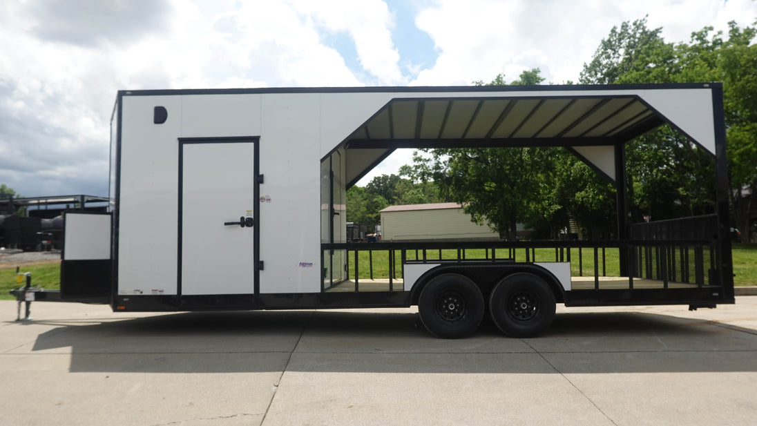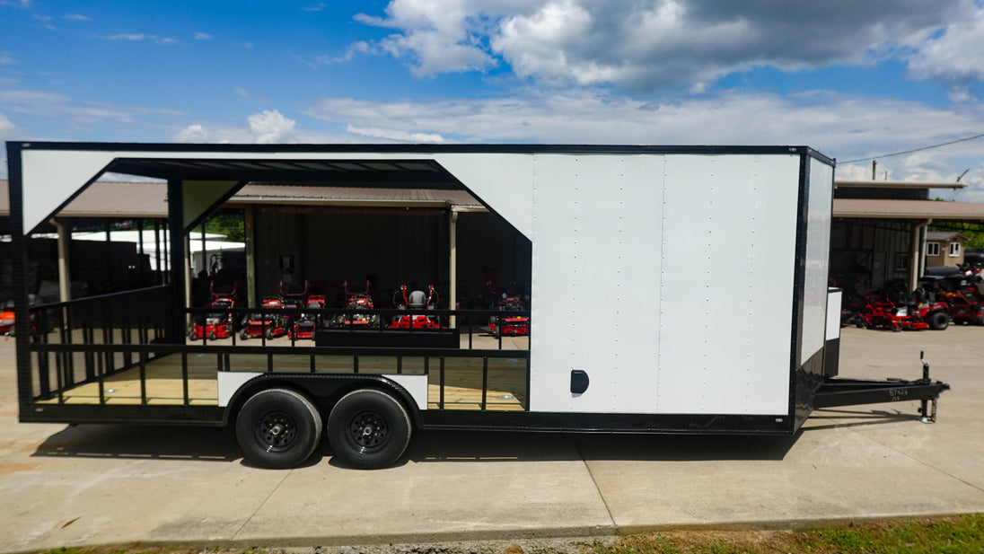 This 8.5' x 24' White Hybrid Drone Trailer is designed to support drone operations, mobile workspaces, or event setups. With a fully enclosed front section and a spacious 16-foot rear covered deck, it delivers weather-protected flexibility while maximizing utility.