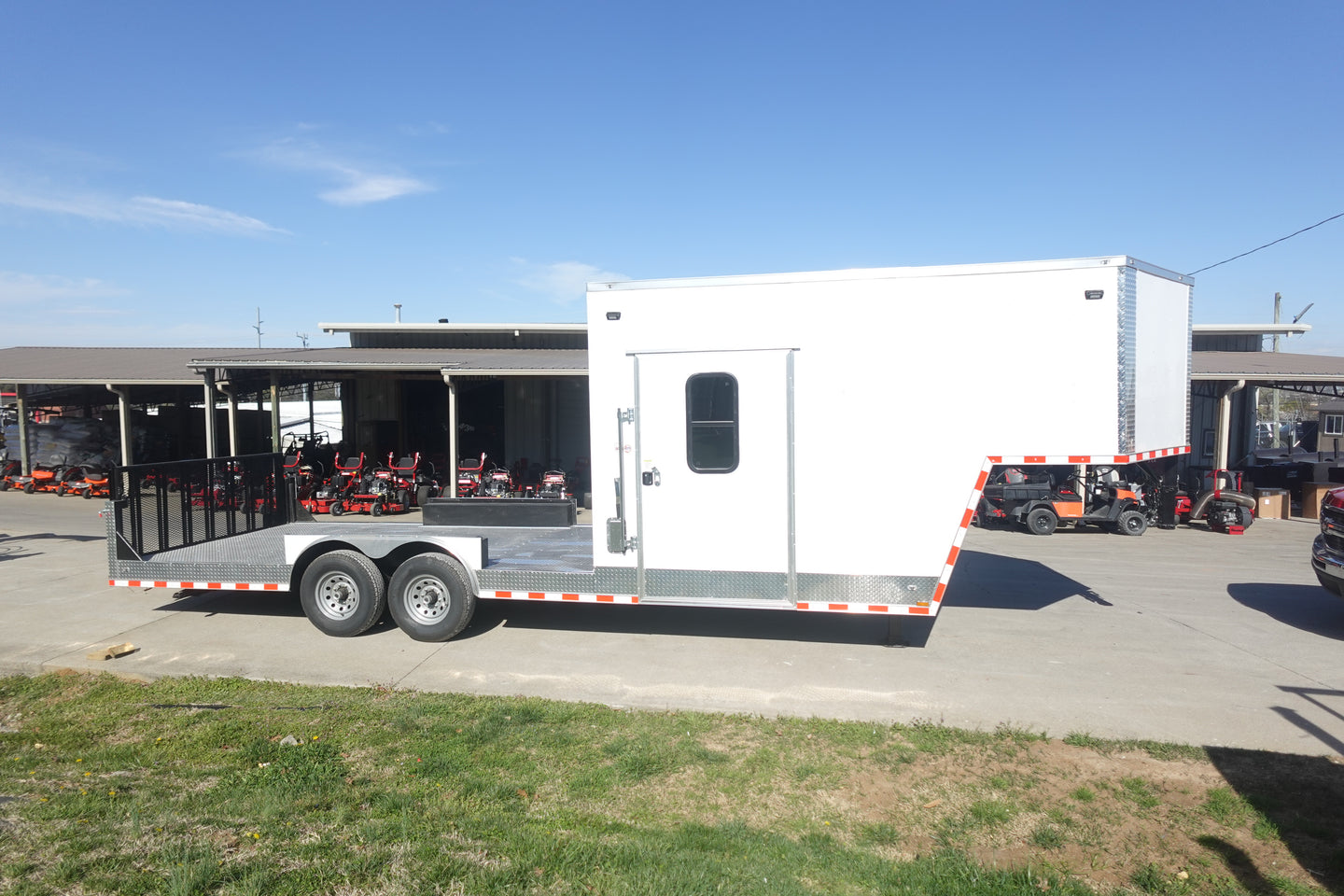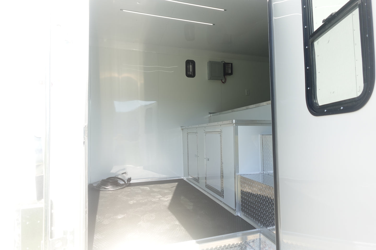 The 8.5 x 32' gooseneck hybrid enclosed is a powerhouse of functionality, offering superior durability, spacious storage, and modern conveniences. With advanced features like a 50 AMP electrical package, insulated walls and ceiling, and robust construction.