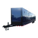 This 8.5' x 36' dark blue enclosed trailer features a rugged triple-axle configuration, wide access points, and secure cargo management systems. The blackout trim and fenders add a sleek, professional finish.