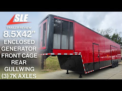 This 42-foot gooseneck trailer combines spacious interior design, heavy-duty construction, and professional-grade utility features, making it ideal for commercial use, mobile work setups, or specialized transport. Finished in a striking bright red with a blackout package, it offers both style and durability. With 32 feet of usable floor space, a 9-foot interior ceiling height, and an insulated metal-panel interior, the trailer is built for comfort, efficiency, and all-weather function.
