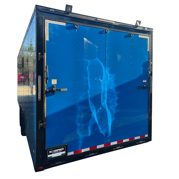 8.5x18 Blue V-Nose Slant Top Enclosed Trailer with Blackout Package