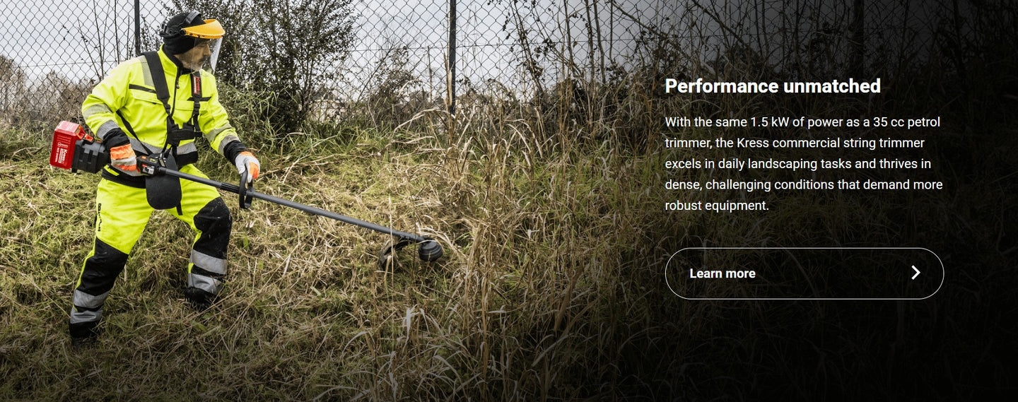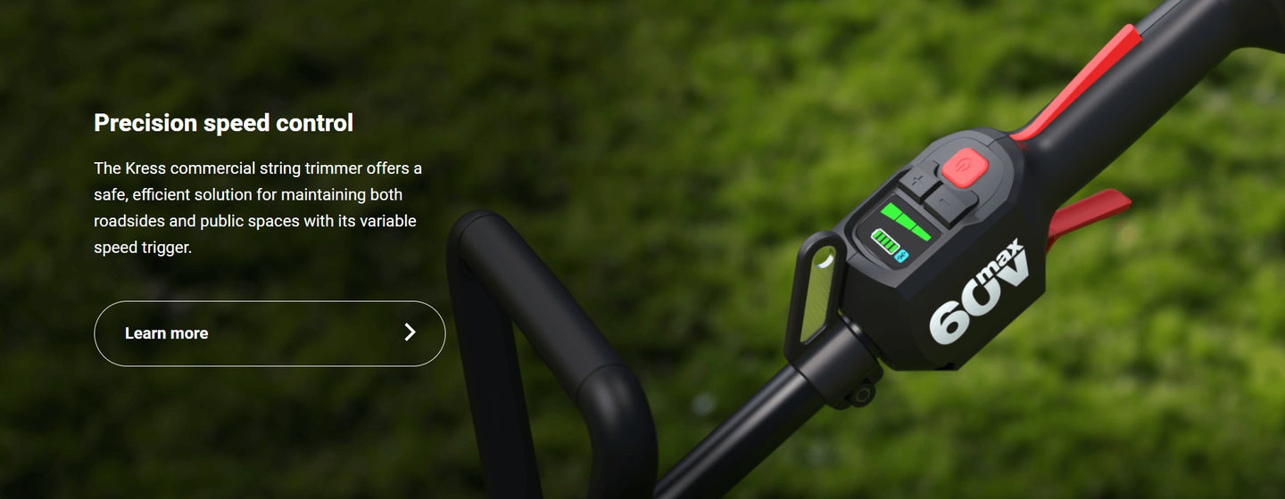 Integrates seamlessly into the Kress 60V platform, delivering extended runtime and lower operating costs than gas or non-commercial battery models.
