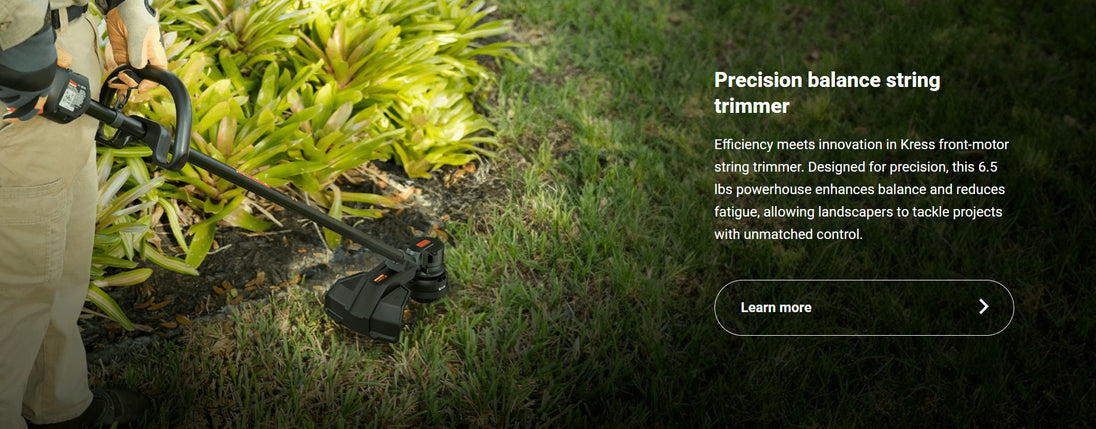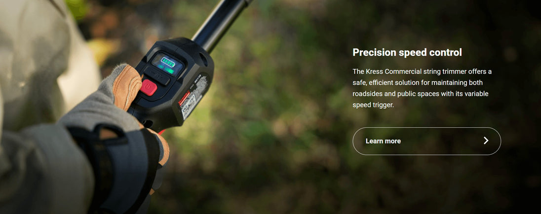 The Kress KC110.9 Commercial 60V 16.5" string trimmer offers 0.9 kW of power—comparable to a 25cc gas trimmer—in a lightweight 3 kg build. Its front-mounted motor enhances control and maneuverability, while dual-speed settings and a variable speed trigger provide precise trimming. With low vibration, an IPX5 water-resistant rating, rapid line reload, and compatibility with knife blades, it’s built for professional durability and comfort in demanding landscaping environments.