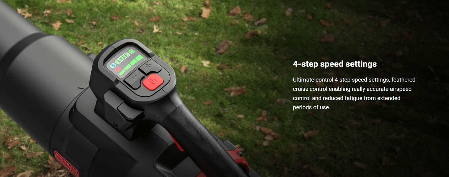 Precision Control with 4 Speed Settings – Features an adjustable throttle and cruise control for tailored airflow that reduces fatigue during long clean-up sessions.