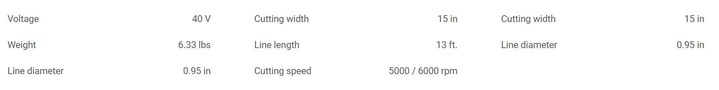 | Trimmer Head Type | Quick-load trimmer head w/ Bump-feed system |