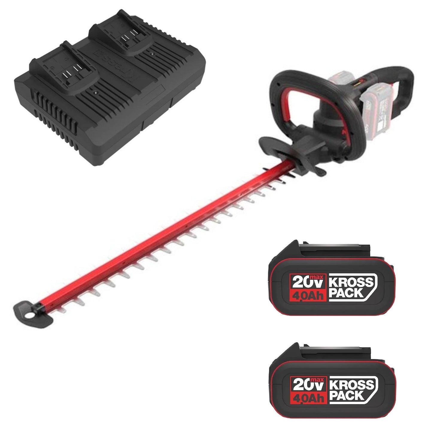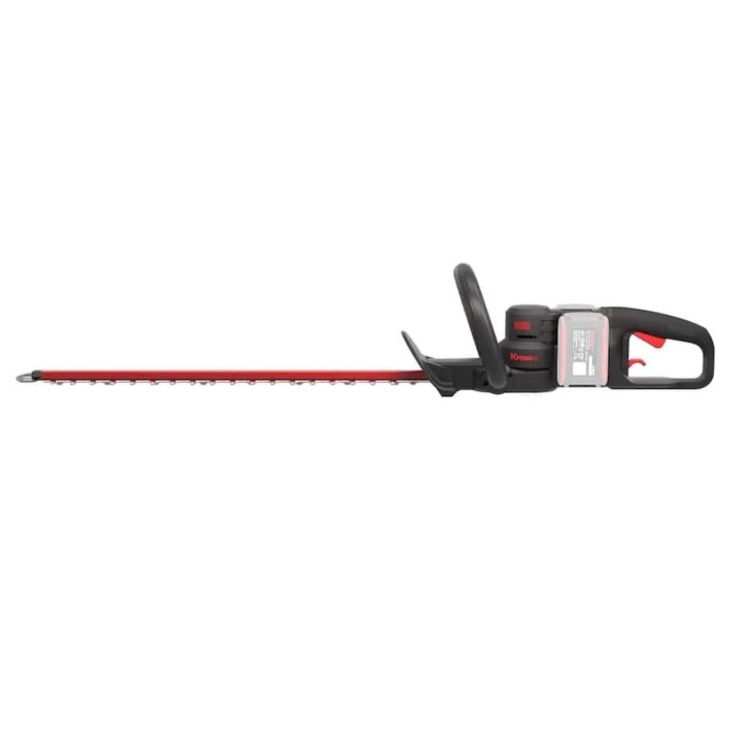The Kress KG285 40V hedge trimmer delivers 800W of cutting power with 24" laser-cut dual-action blades, a 180° rotating handle, and a safety-focused dual-grip system. Designed for precision, durability, and comfort, it includes two 2Ah batteries and a 4A dual charger, making it ready for extended trimming sessions right out of the box.
