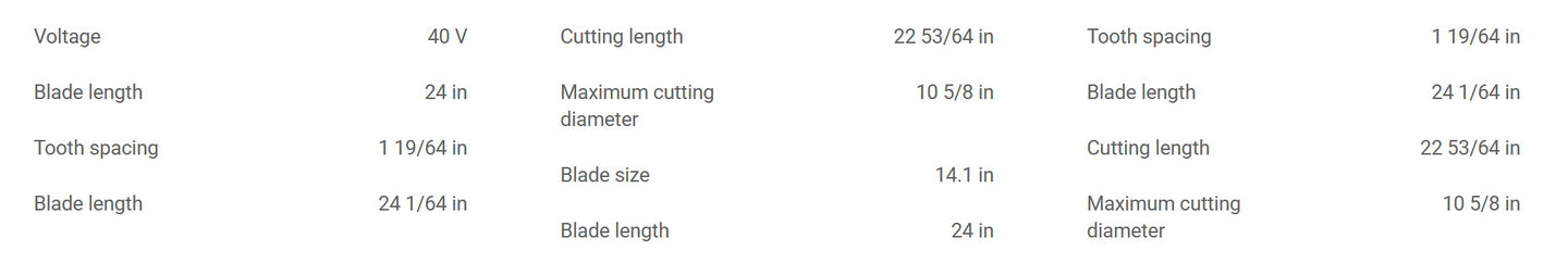 With a maximum cutting diameter of over 10 inches and tooth spacing of 1-19/64 in, it handles thick branches and dense growth with confidence.