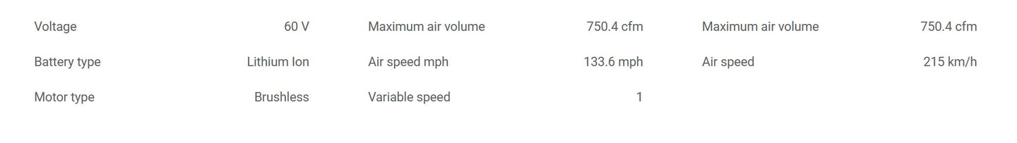 High-Volume Airflow – 750 CFM at 134 MPH: Combines massive airflow and fast airspeed for efficient removal of stubborn leaves and debris across wide areas.
