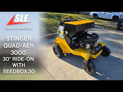 -20%The Stinger Equipment Quad-AER 3000 with SeedBox (QA3000‐SB) is a ride-on aerator with a stand-on platform, a plug-and-play 50lb hopper, and a 22-horsepower Kawasaki FT730V engine. The Quad-AER 3000 has an aerating width of 30 inches and a depth of up to 4 inches.