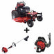This package includes a 52 inch Bradley 52SC-BS26 compact stand on mower with a 26 horsepower Vanguard engine, a Shindaiwa EB600RT backpack blower, and a Shindaiwa T235 string trimmer.