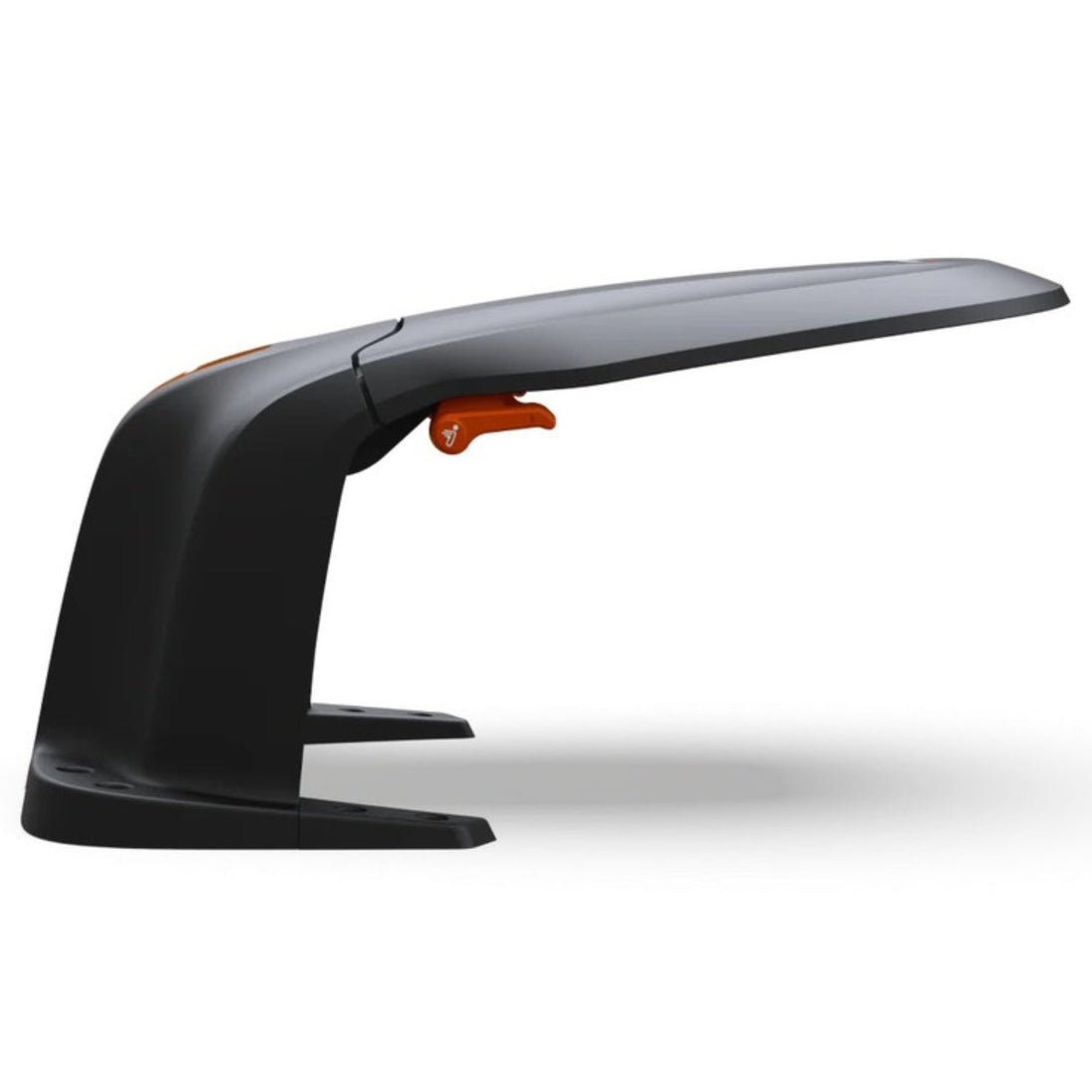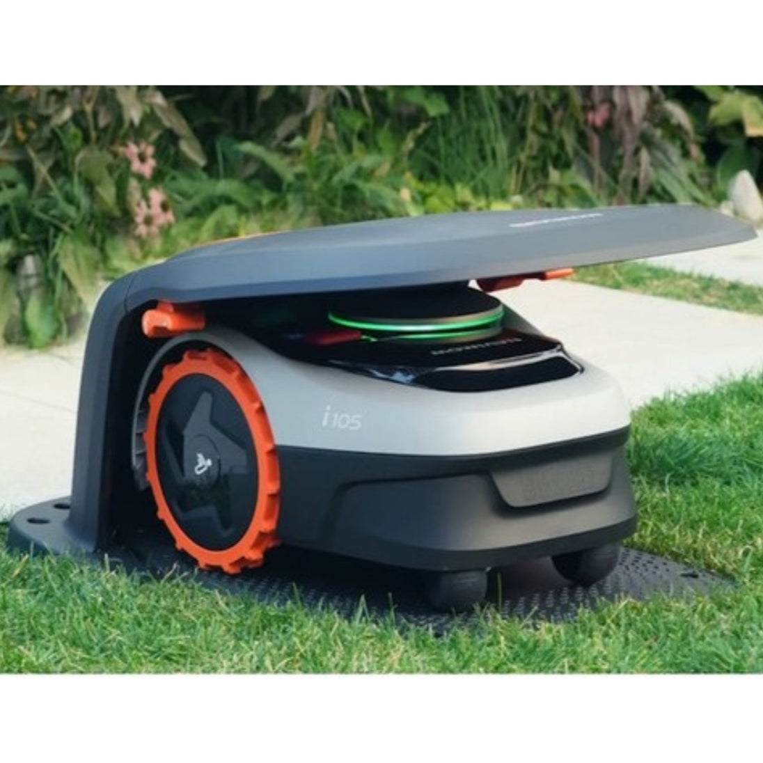 • Easy Control Access: A flip-up cover gives direct access to the mower’s control panel—even while charging—without removing the shelter.