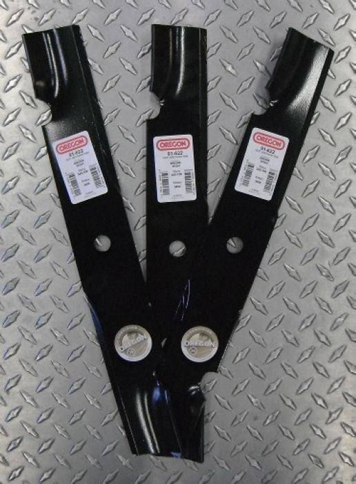 The Oregon 91-622 high-lift blades are designed for superior cutting performance and efficient grass discharge, reducing clumping and improving bagging. Measuring 18” in length with a 5/8” center hole, they fit 52” Exmark, Scag, and Toro Wheel Horse zero-turn mowers, as well as 36” Scag models. This set of three durable replacement blades meets OEM specifications, directly replacing Toro 105-7781 and Scag 48108, 481707, 482462, and A48108 for reliable, long-lasting performance.