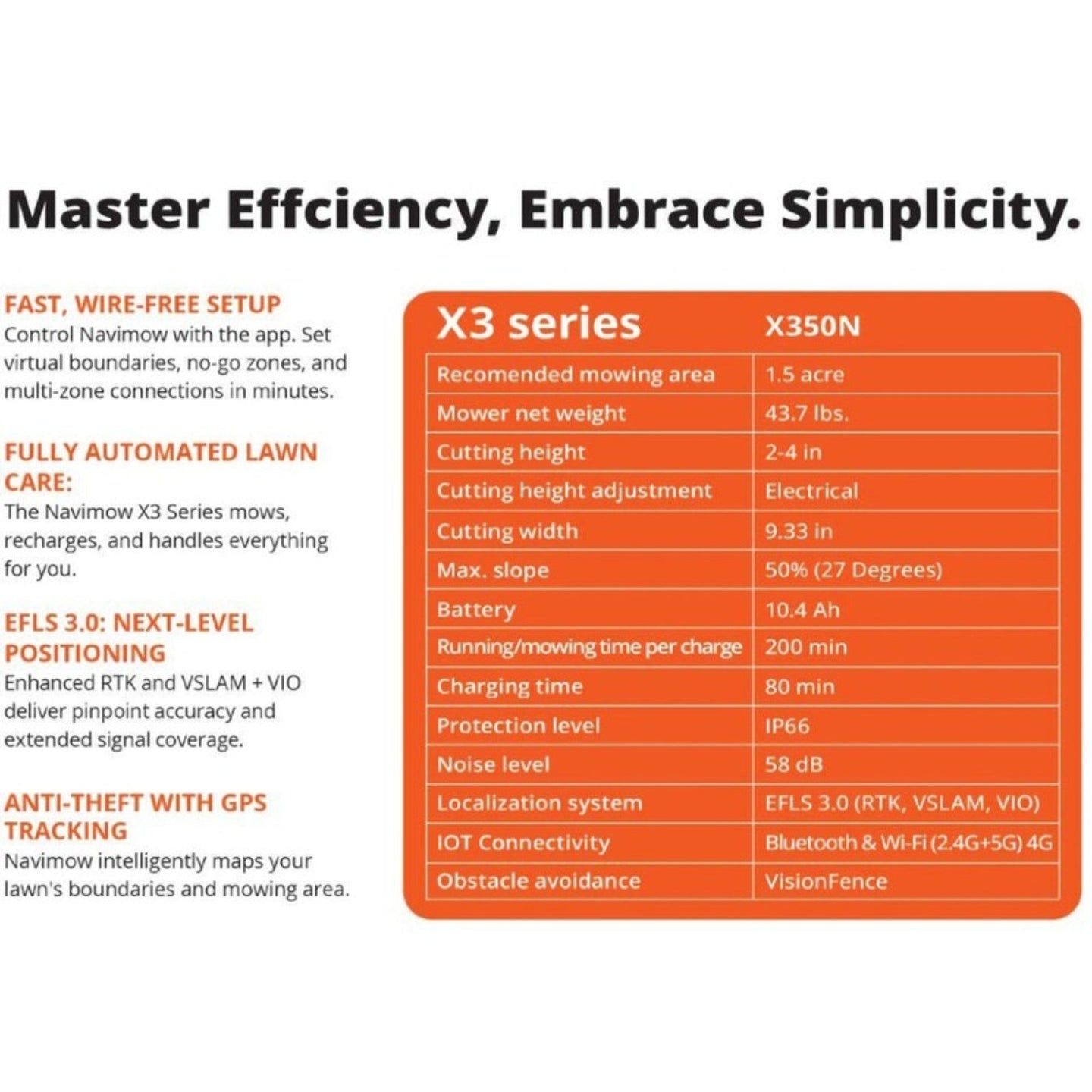 • EFLS 3.0 for Game-Changing Precision: Upgraded RTK coverage, VSLAM, and VIO technology combine for centimeter-level accuracy—even in signal-challenged or complex yards.