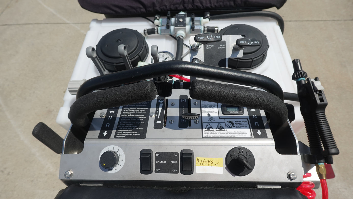 The Ferris Ventura XC FS3200 is a zero turn ride on spreader/sprayer with a variable spray system that allows spray widths of 2’, 4’, 6’ or 8’. This unit also has a 100% stainless steel frame to resist corrosive chemicals