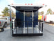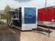 This concession trailer features a 100 lb propane cage, 3 bay sink with separate hand wash, 5 foot concession window with glass and screens and a 5 foot porch area. The unit has a 6 foot hood system installed as well as (2) 3,500 lb axles with brakes.