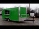 This concession trailer features a 5 foot concession window with glass and screens and a flip up counter outside, a 36 inch generator box with slide tray and drop leg, and (3) 220 volt outlets for ice cream machines.