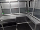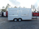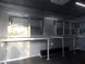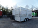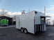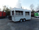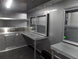 This trailer features a 4 ft commercial grease hood, a 5 ft concessions window with glass and screens and flip up counter outside, a 6 ft concessions window with glass and screens and flip up counter outside, and a 4 ft concessions window with glass and screens and flip up counter outside