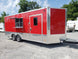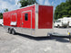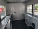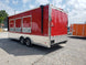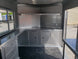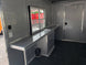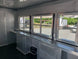 This trailer was designed for a mobile auction office. It features (4) 4 foot concession windows with glass and screens and flip-up counters outside, a 4 foot room on the rear for storage, heat and A/C unit. aluminum mill counters, cabinets, (3) sets of drawers, and an 18 foot pull out awning.