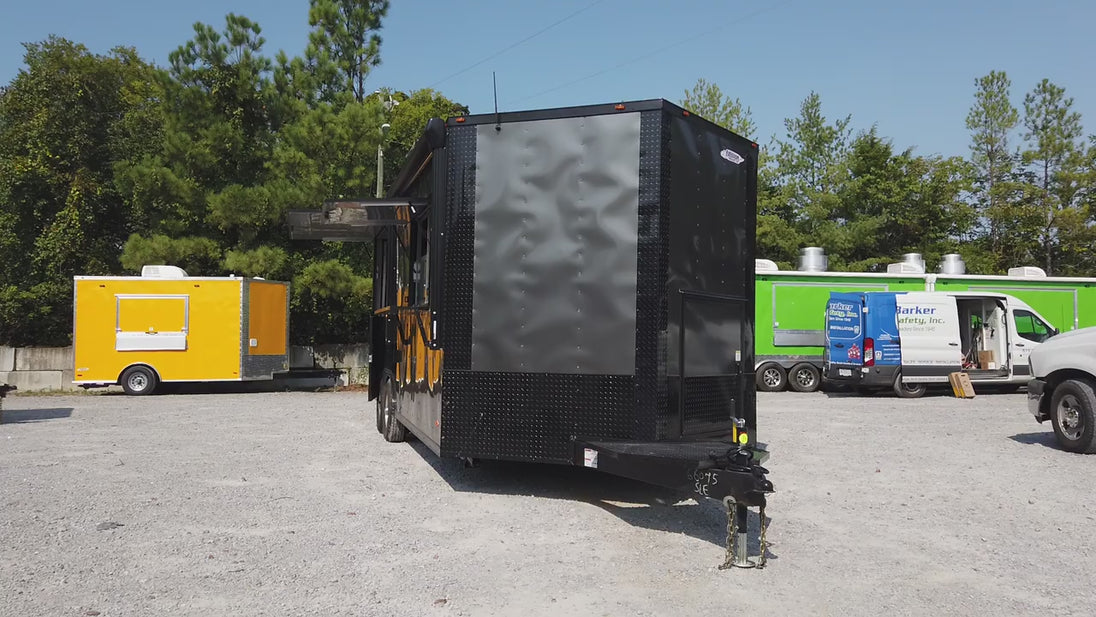 This 8.5 foot x 22 foot concession trailer offers a hand sink, 3 compartment sink, and a 2.5 gallon water heater. A few other features are the 5 foot concession window, 10 foot commercial grease hood, A/C & heat unit, 7.6 foot interior height, and so much more!