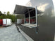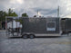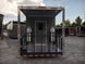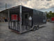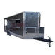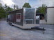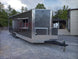 This 8.5' x 24' porch style concession trailer offers a 7' porch area, 17' kitchen area with a 6' commercial grease hood, hand sink, 3 compartment sink, and so much more!