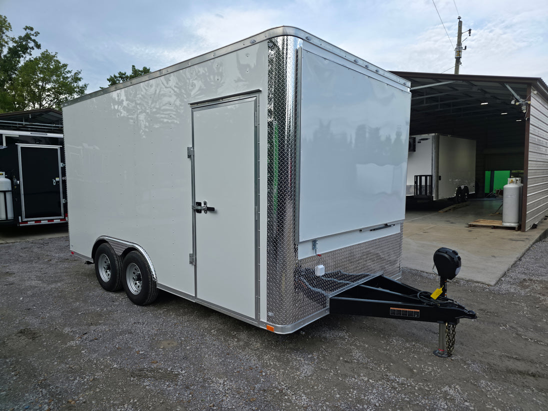 • Compact 8.5' x 16' Trailer with 3' Tongue – Perfectly sized for versatile hauling with extra space for a variety of applications.