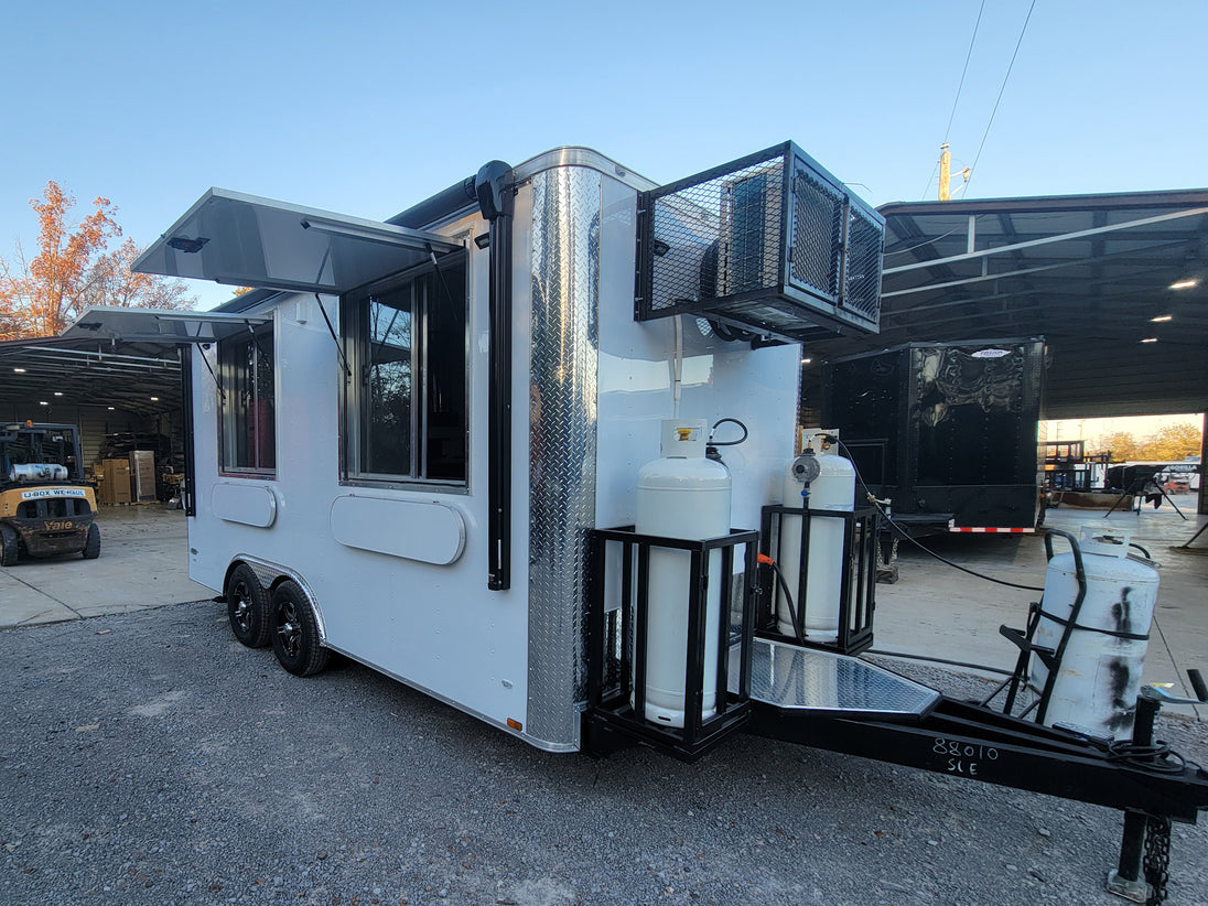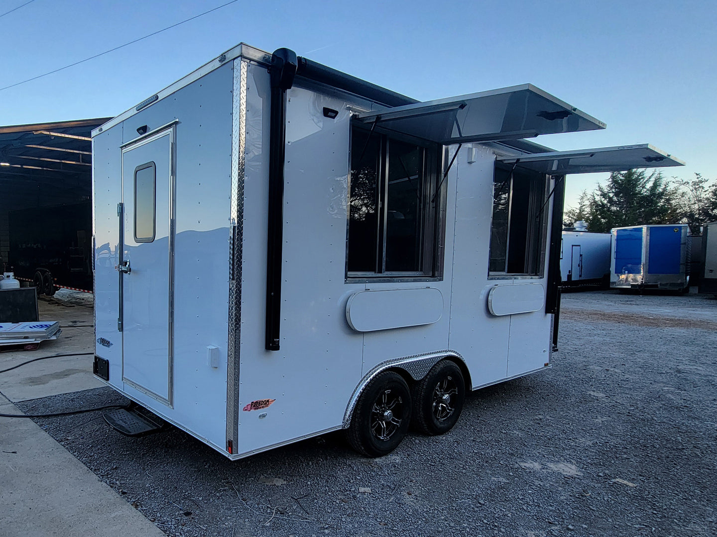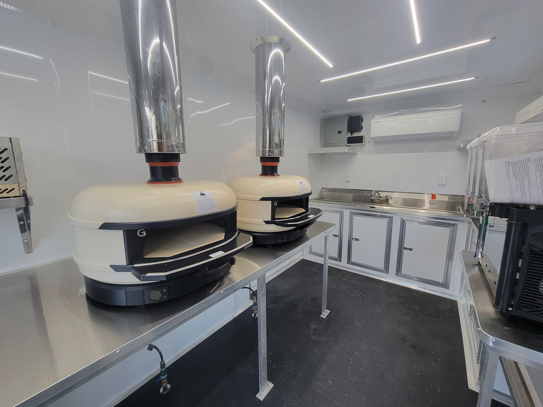 • Stunning 8.5' x 16' white custom pizza concession trailer built to impress and perform at high-traffic events