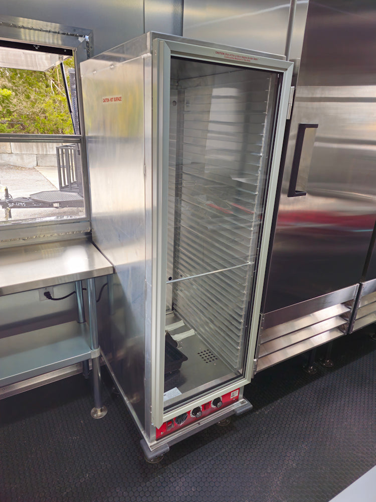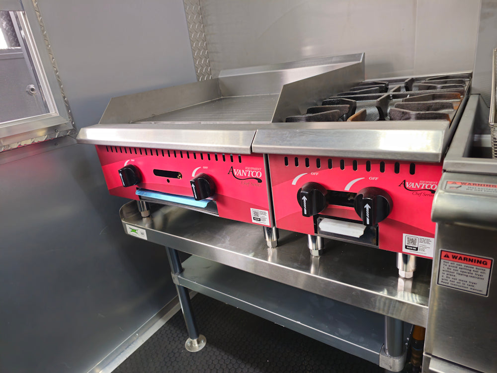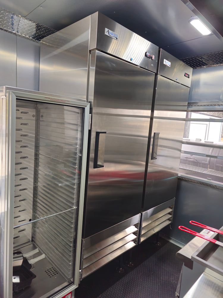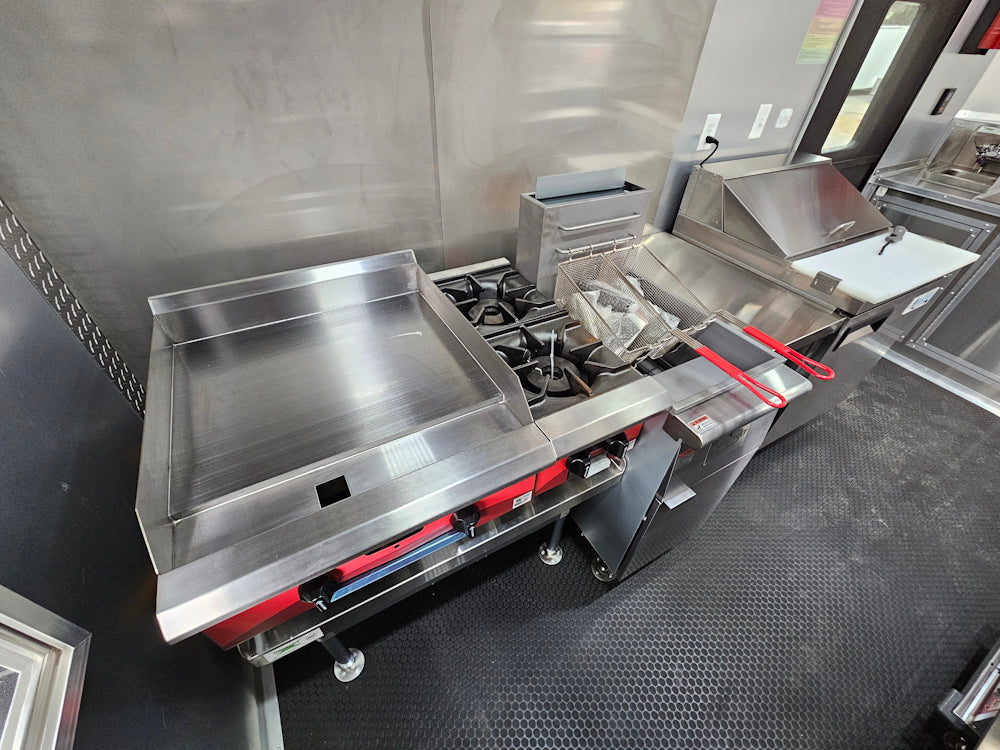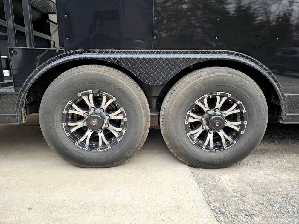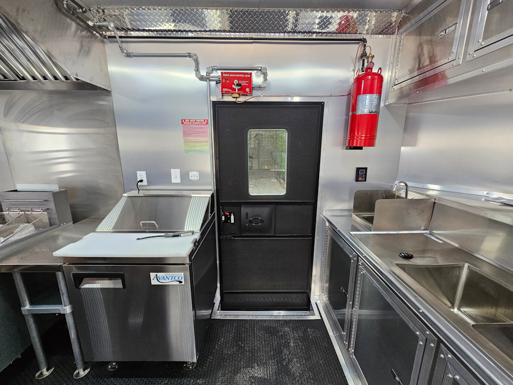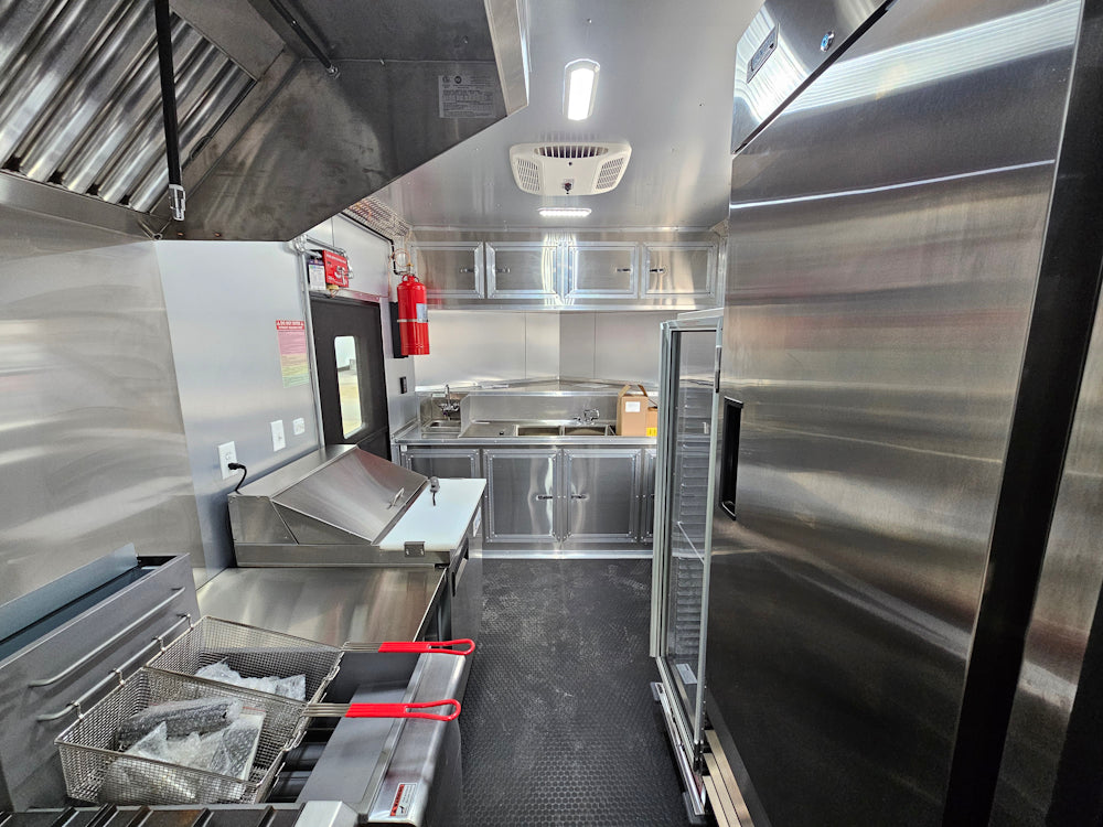 Designed for versatility and performance, this 8.5' x 20' enclosed trailer features a spacious 6' railed porch, premium black exterior, and an 8' interior height for maximum functionality. Equipped with (2) 7,000 lb axles, a 100 Amp electrical system, and a climate-controlled interior, it ensures smooth towing, ample power, and all-weather comfort. Fully loaded with stainless steel countertops, high-end appliances, a 250-gallon smoker, and fire suppression and propane packages, this trailer is the ultimate mobile kitchen or workstation for any professional operation.