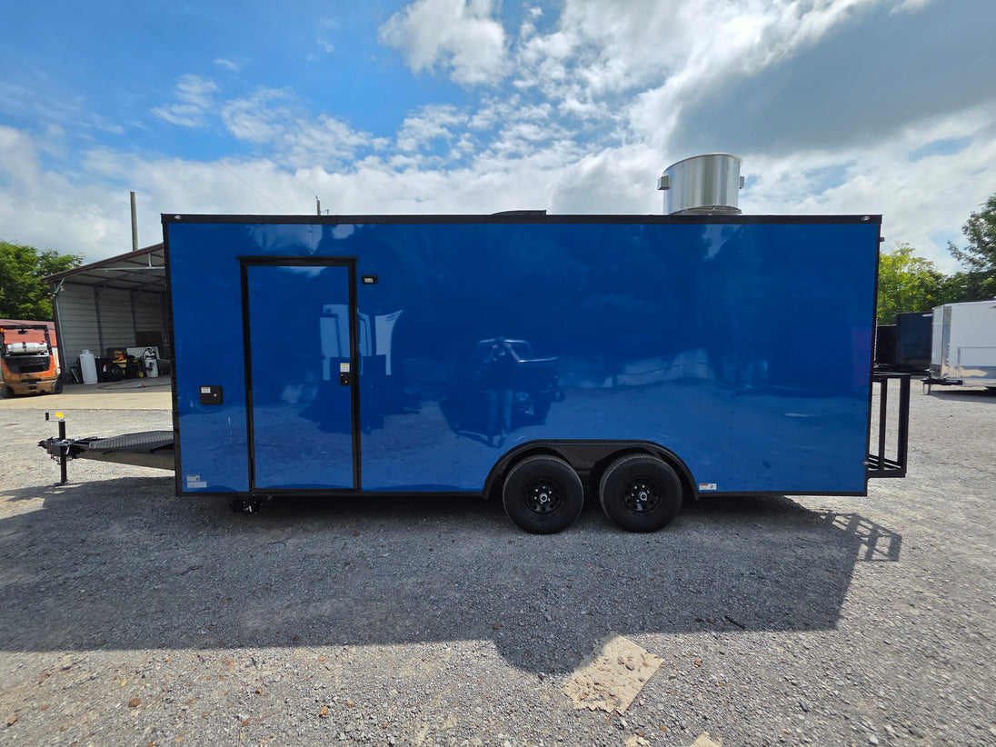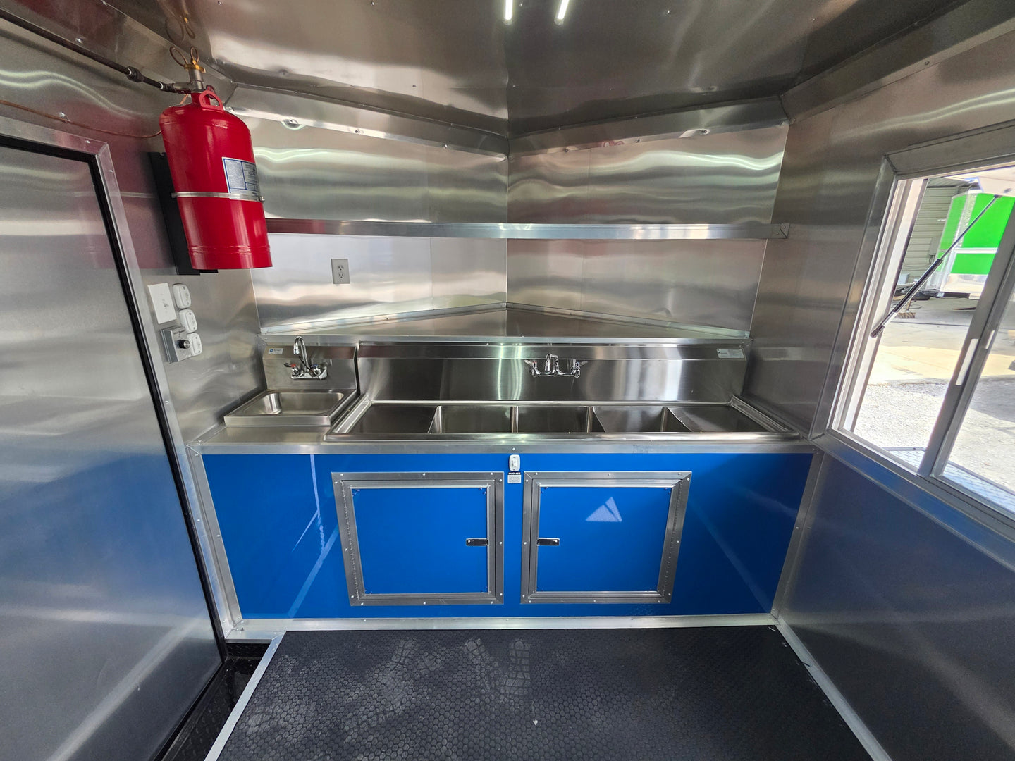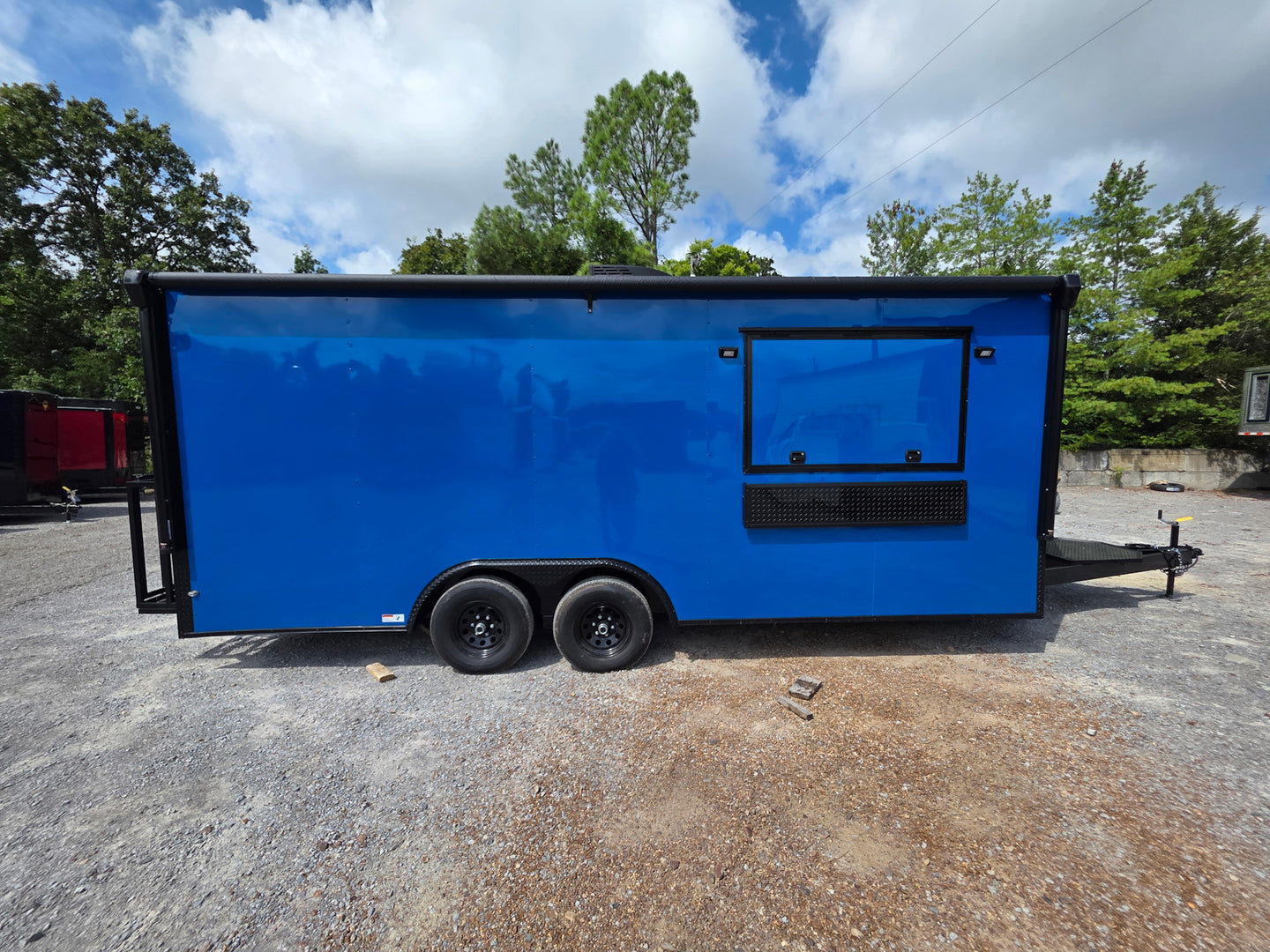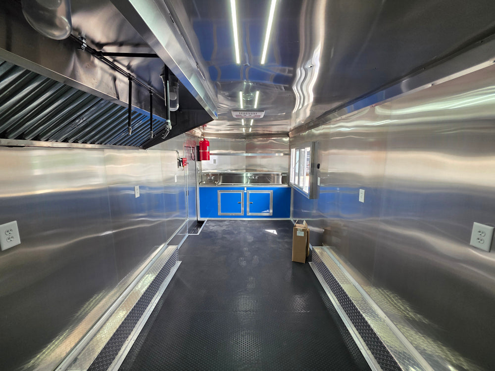 The 8.5’ x 20’ Cobalt Blue Concession Trailer is a fully equipped mobile kitchen designed for food service, events, and catering. Featuring a bold cobalt blue exterior with blackout trim, spacious 7.5’ interior height, stainless steel counters, and a large 5’ serving window, it’s built for both style and efficiency. Complete with a sink package, grease hood, propane setup, fire suppression system, and powerful electrical package, this trailer is ready to handle high-volume operations with ease.