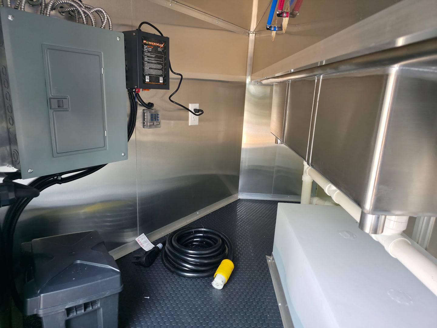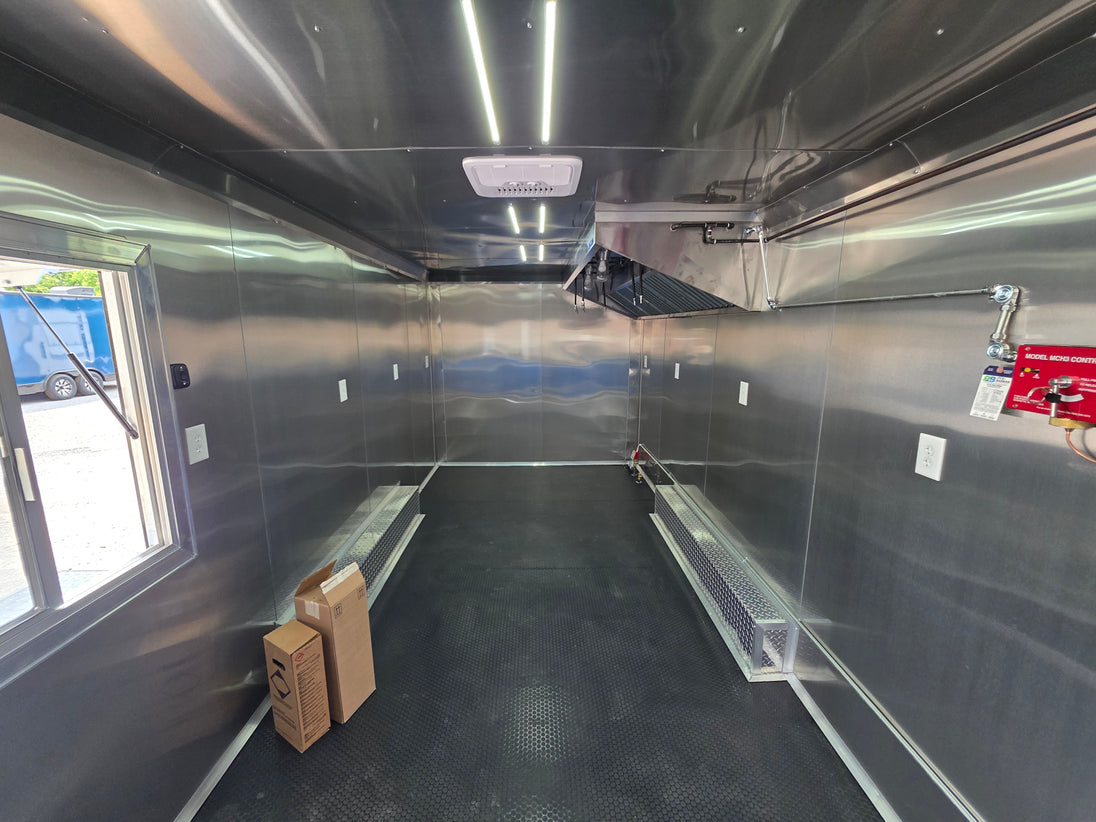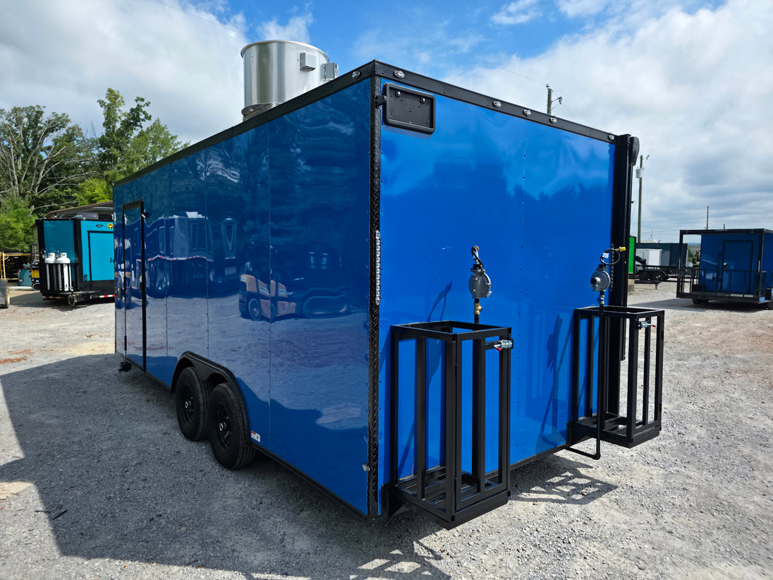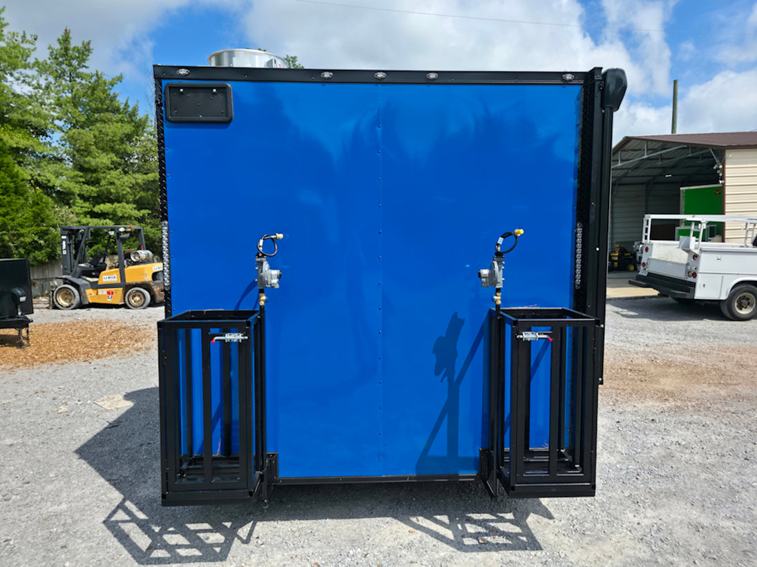 The 8.5’ x 20’ Cobalt Blue Concession Trailer is a fully equipped mobile kitchen designed for food service, events, and catering. Featuring a bold cobalt blue exterior with blackout trim, spacious 7.5’ interior height, stainless steel counters, and a large 5’ serving window, it’s built for both style and efficiency. Complete with a sink package, grease hood, propane setup, fire suppression system, and powerful electrical package, this trailer is ready to handle high-volume operations with ease.