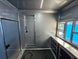 This concession trailer was designed for a coffee shop and offers (2) 100amp panels with (2) 50amp service cables for service. With the trailer, it is designed for a generator platform for 2 Generators to be mounted on the rear. The unit also features a bathroom on board.