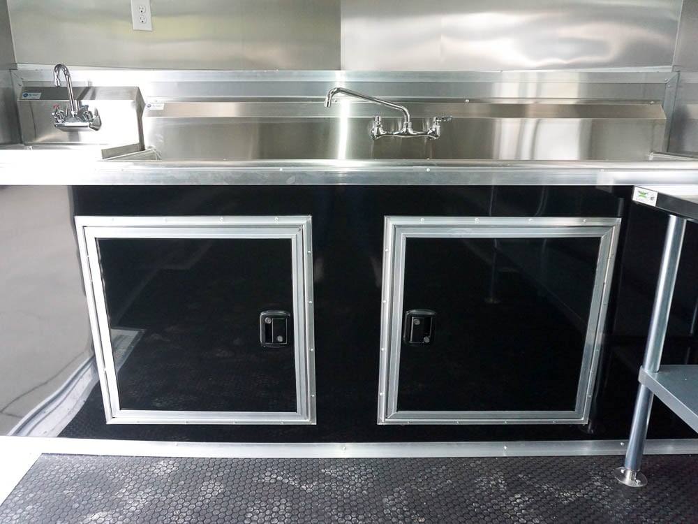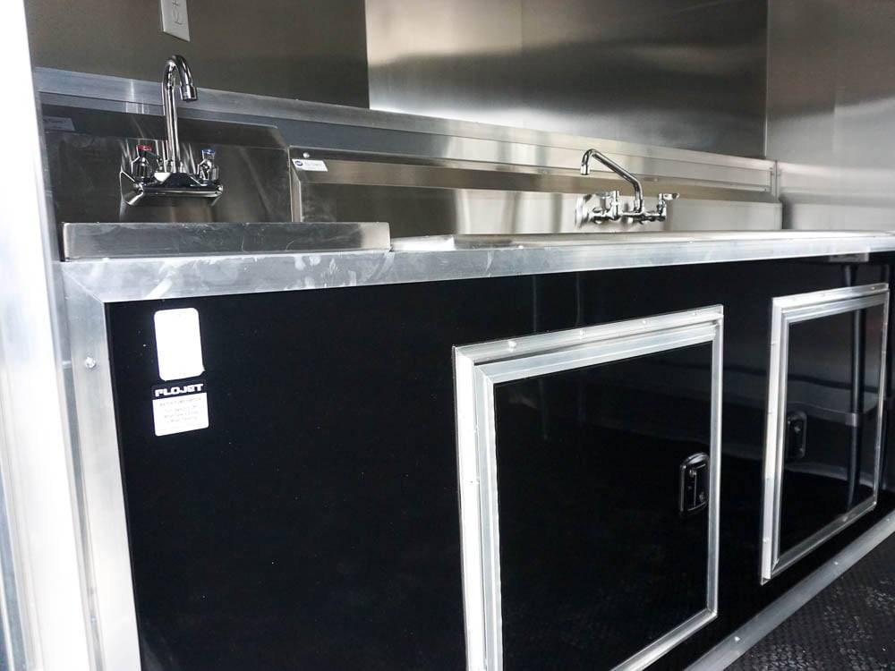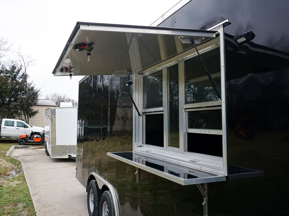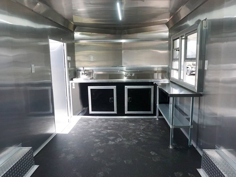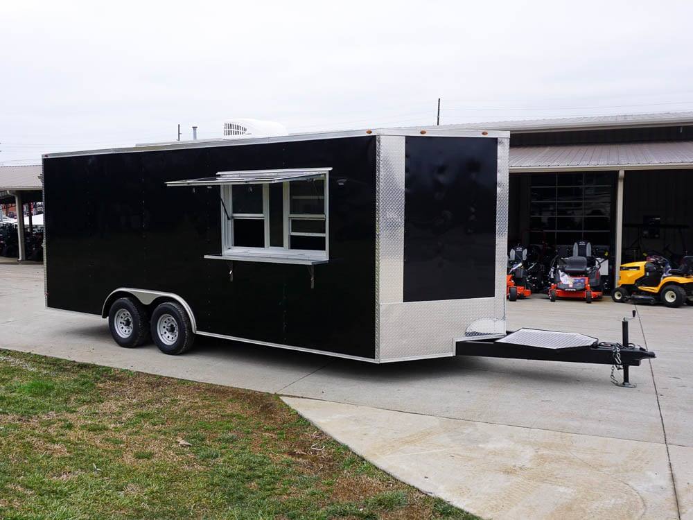 This concession trailer is a simple concession trailer with sink package, A/C & heat, 100 amp electrical package, 5-foot concession window, Rubber flooring, insulated walls, and ceiling, aluminum mill finish walls, and ceiling at an affordable price.