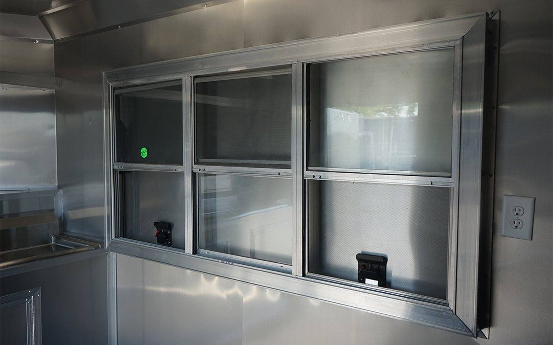 • Large Serving Window: 5' concession window with glass, screens, and a flip-up counter for convenient customer service.