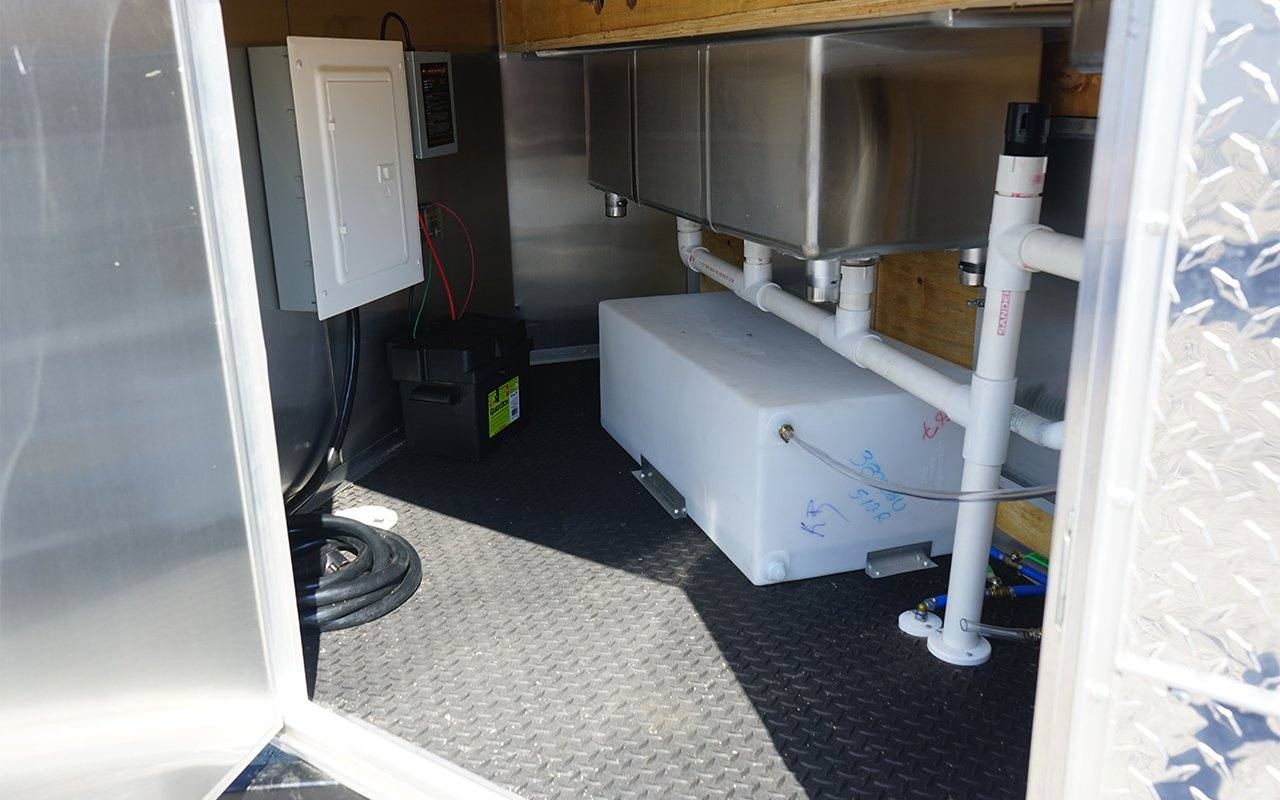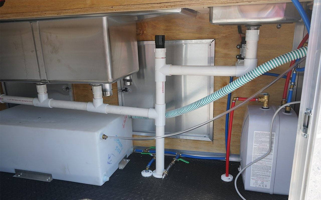 • Complete Sink Package: 30 gal fresh water, 50 gal waste water, 2.5 gal water heater, plus a city water fill box for easy hookups.