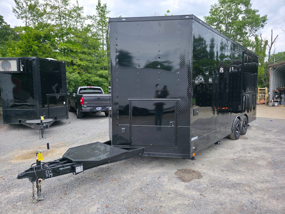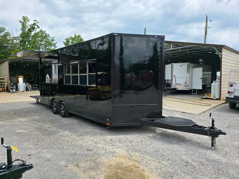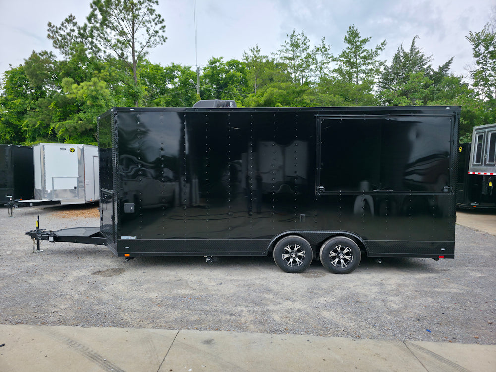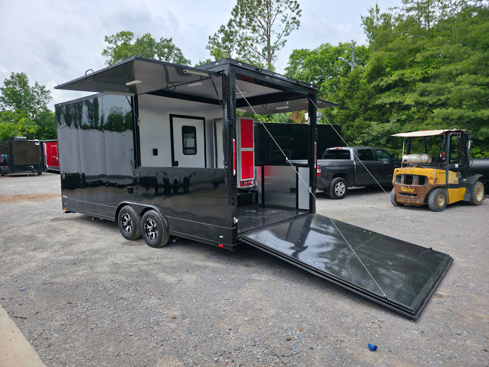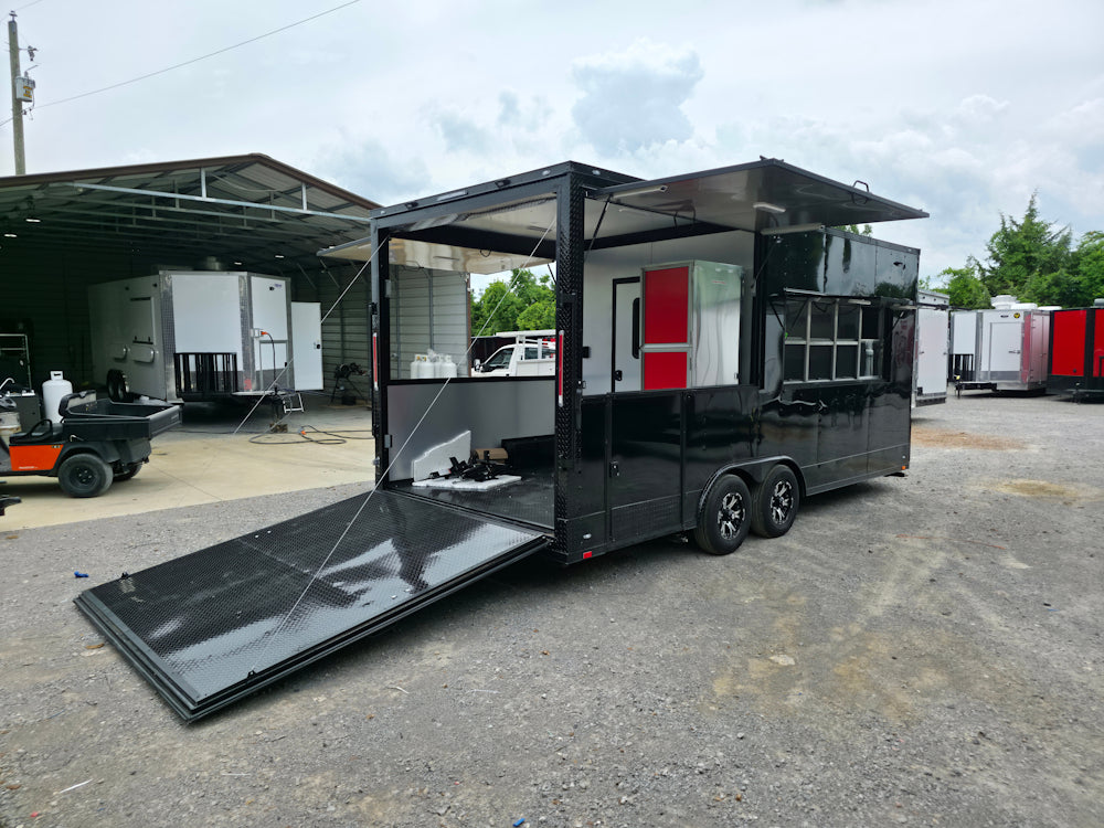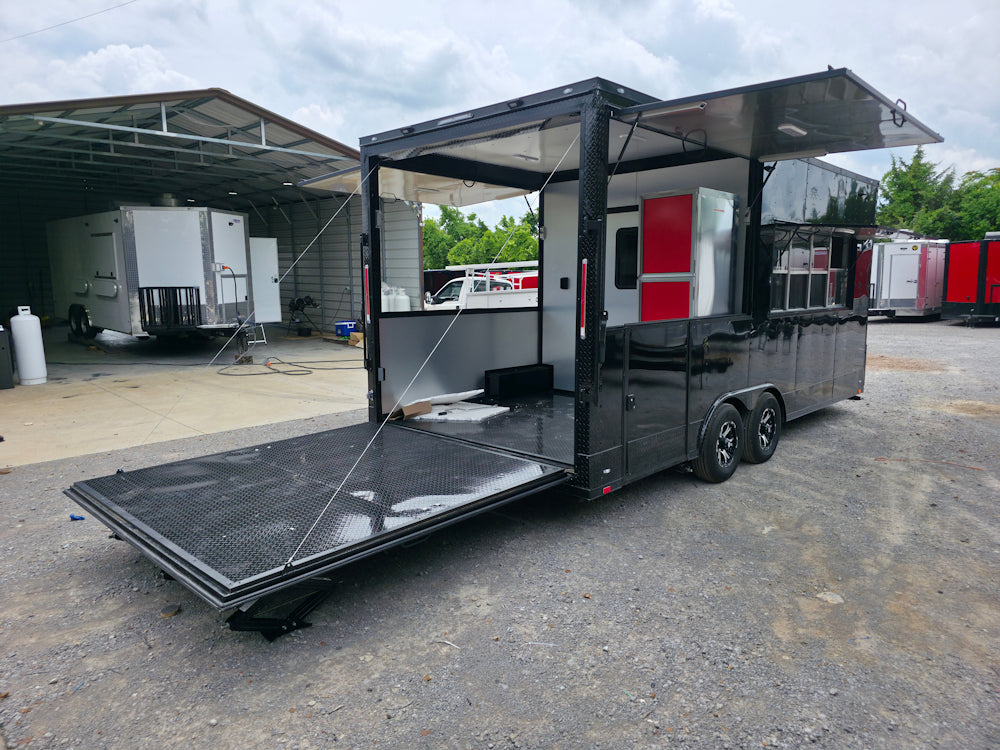 8.5 X 20 Black W/ Blackout Concession Trailer With 8' Porch Food Event Catering