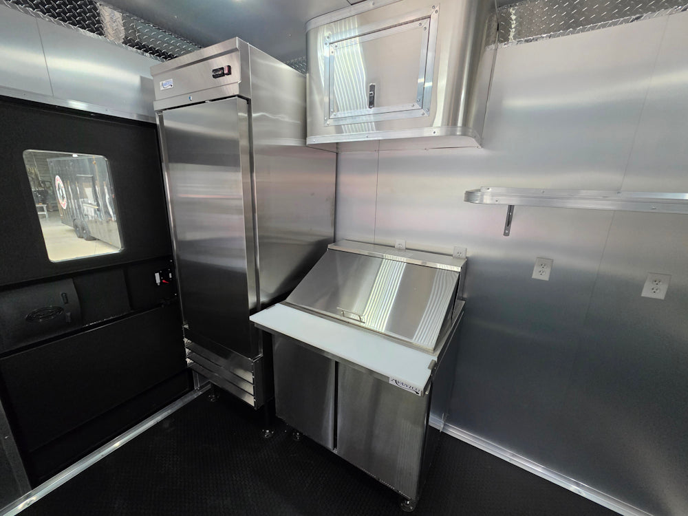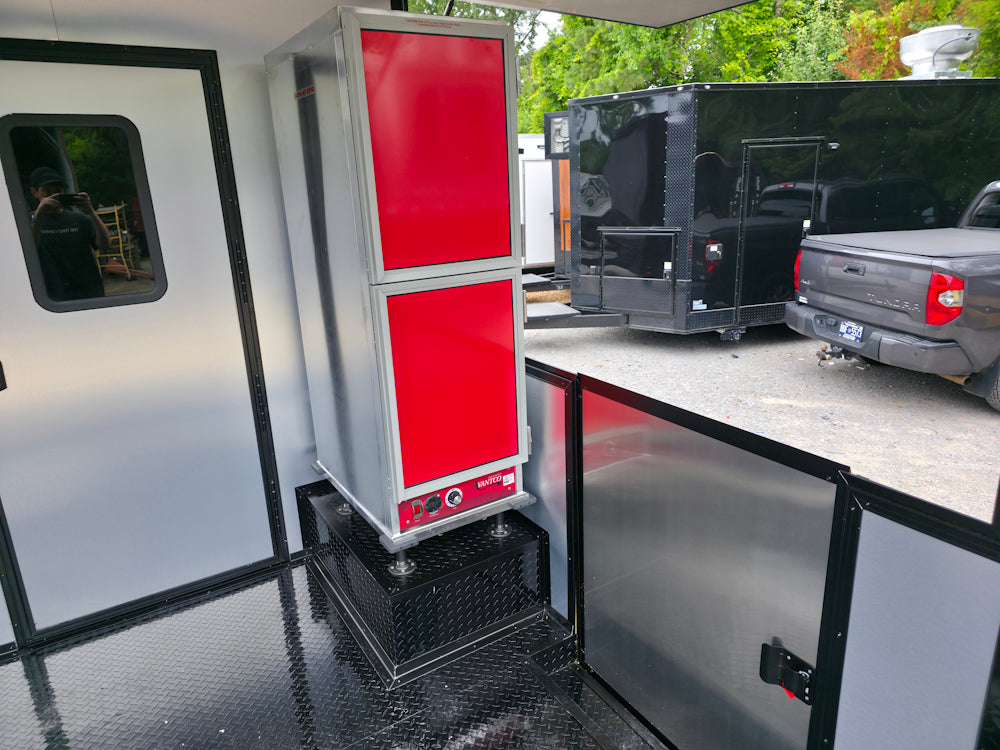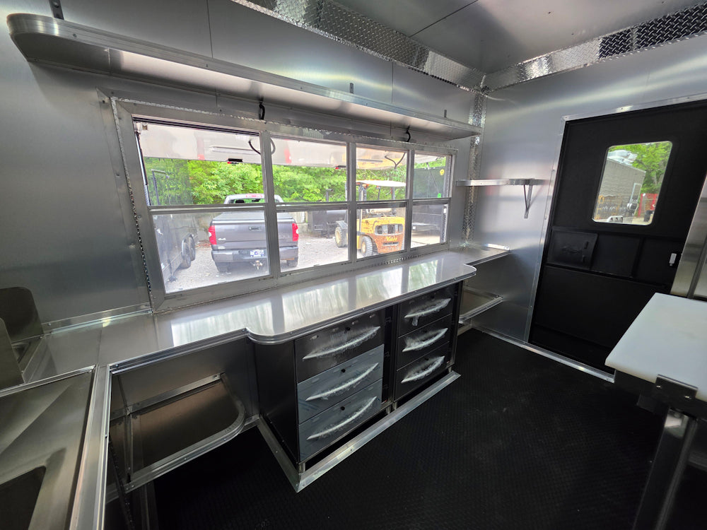• 4' flip-up stainless steel service counter below the window, extending past the window toward the front for additional prep or display space