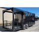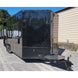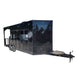 This concession trailer is designed with an 8ft porch area and offers a space for a grill or bbq pit to be installed. The trailer also has all the plumbing and electrical components installed and completed and features an a/c and heat unit.